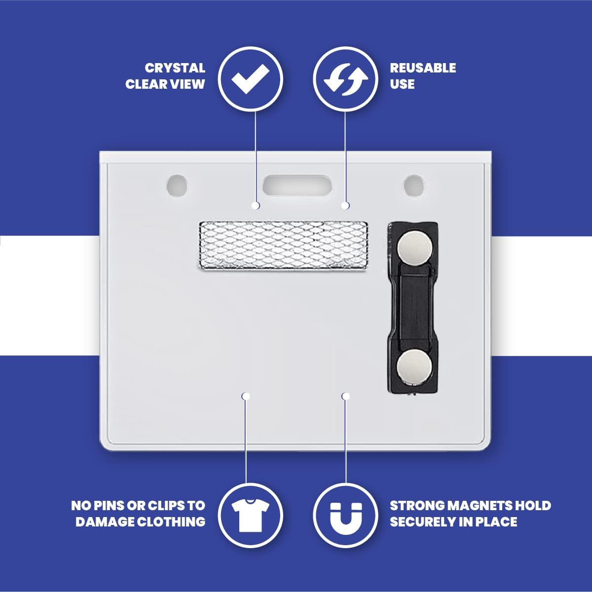 - MAGNETIC NAME BADGE SET – contains everything you need for 100 people with 100 - 4x3 inch clear nametag holders with magnets
