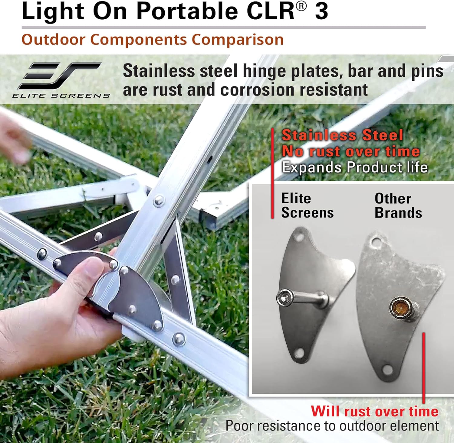 - 【Features & Includes】Features a snap button and velcro frame tension system that ensures a flat projection surface. Small Carrying bag that includes: Single-piece aluminum frame, AT-legs with height adjustment, and CLR 3 screen material.