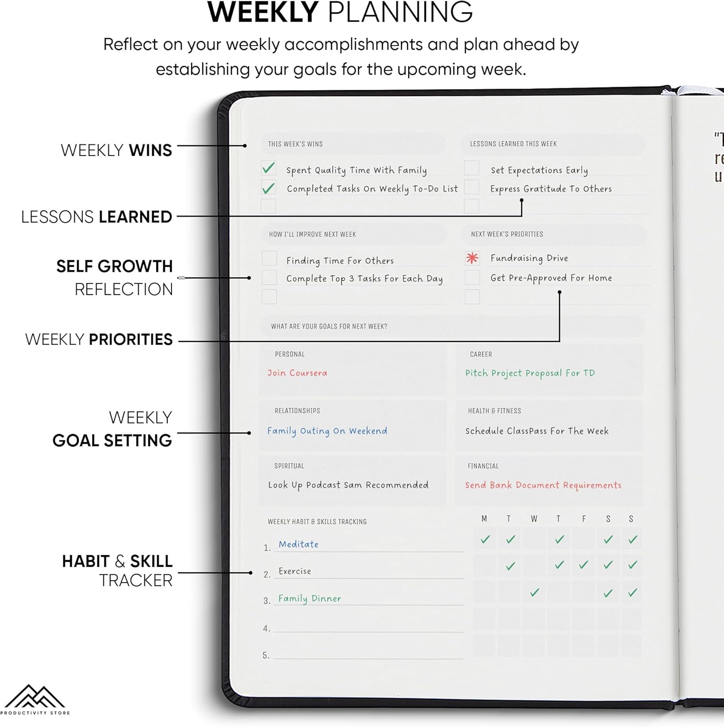 - Undated Weekly Planner with Planner Stickers & Other Bonuses: Use the weekly planner sections to plan ahead each week and reflecting on your weekly performance. This 2025 weekly planner also comes with 5 Bonus features including planner stickers, a habit tracker, weekly inspirational quotes and space for notes.