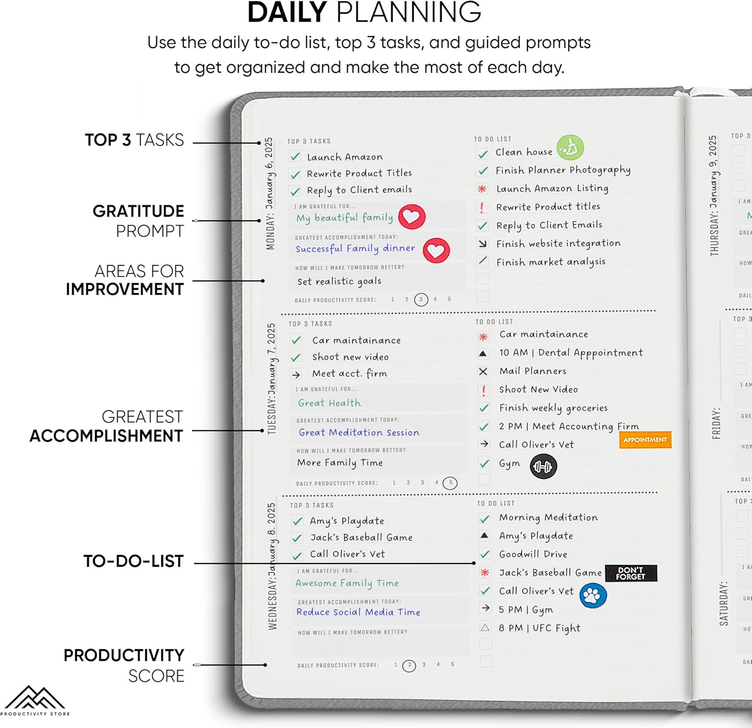 - ✅ SAY HELLO TO THE PLANNER THAT WILL CHANGE YOUR LIFE: Crush your personal and professional goals with Productivity Store’s flagship planner. Get that promotion, start that business or break that bad habit. Evidence-based layouts that increase goal-setting success, happiness and work-life balance.