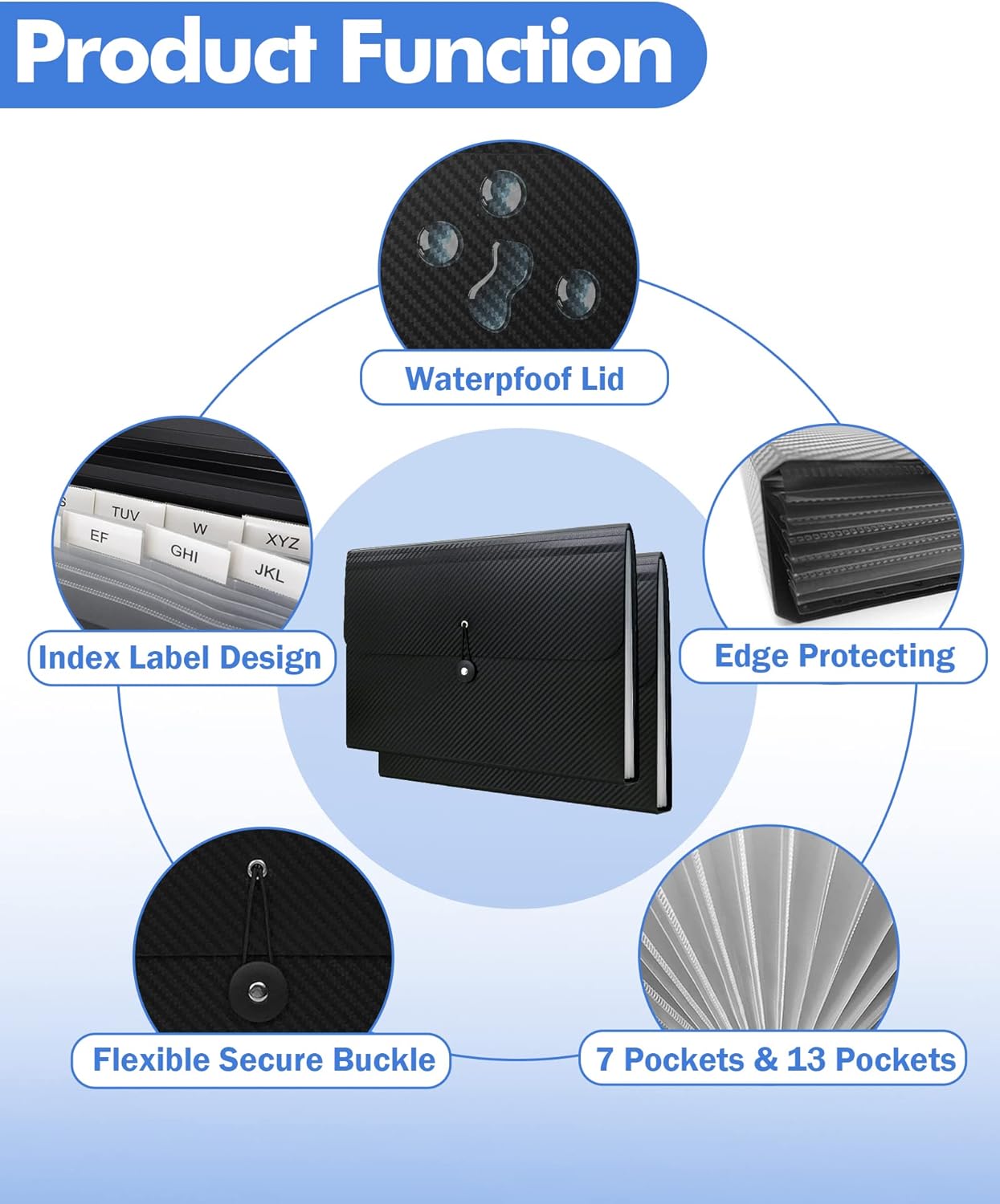 - What You Get : 2x Black 13-pocket Expanding File Folders, Size: 33 * 24 * 3.5 cm, which can store letters, A4 paper, documents, invoices, contracts and regular US papers, The document paper folder is easy to carry, can be put in your backpack, briefcase etc