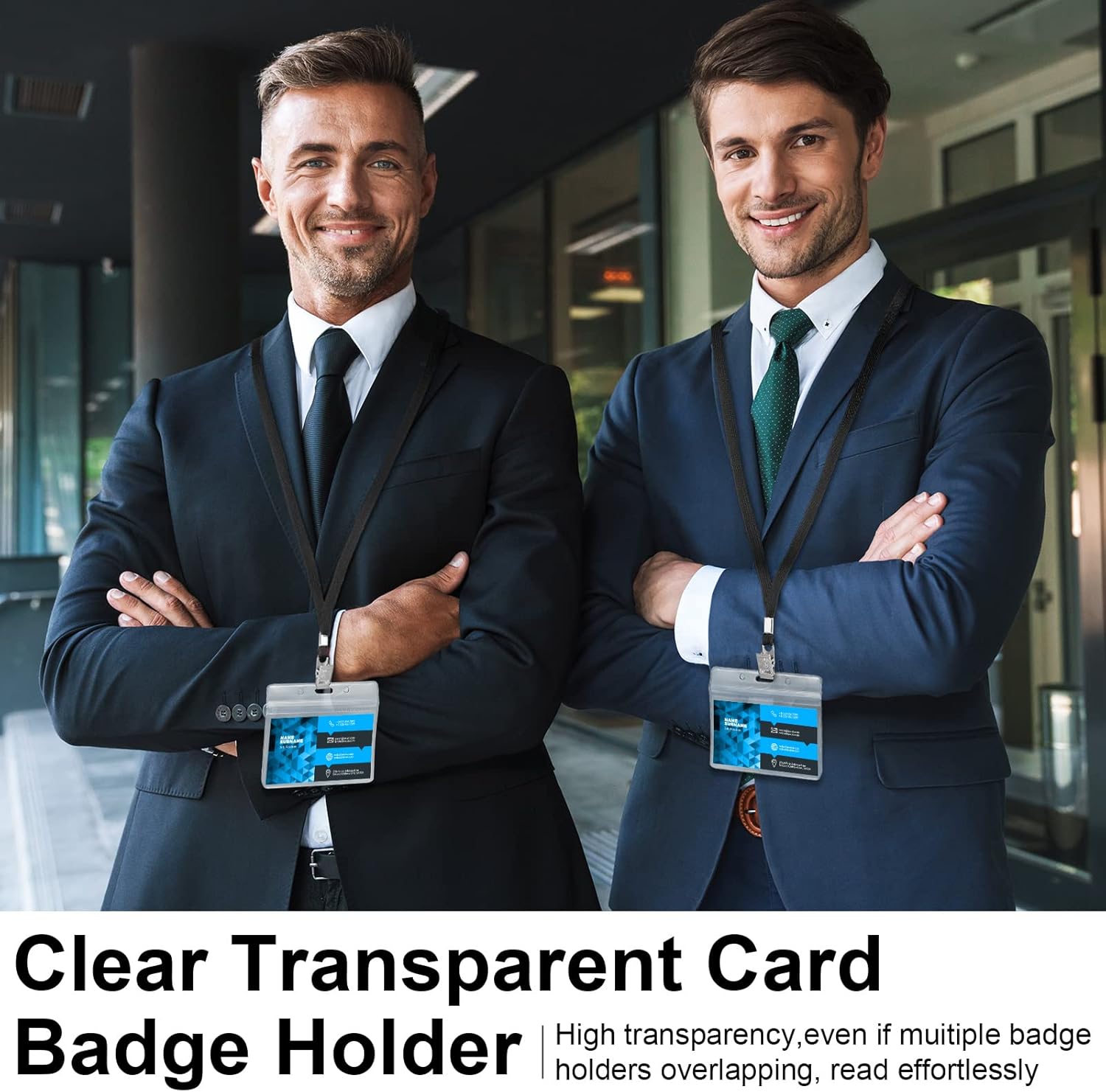- Package Contents: 100 pieces of clear ID card holders with 100 pieces of flat neck lanyards that are available in bright color, which are suitable for most bag tags and ID cards, the enough quantity are enough for business travel office supplies