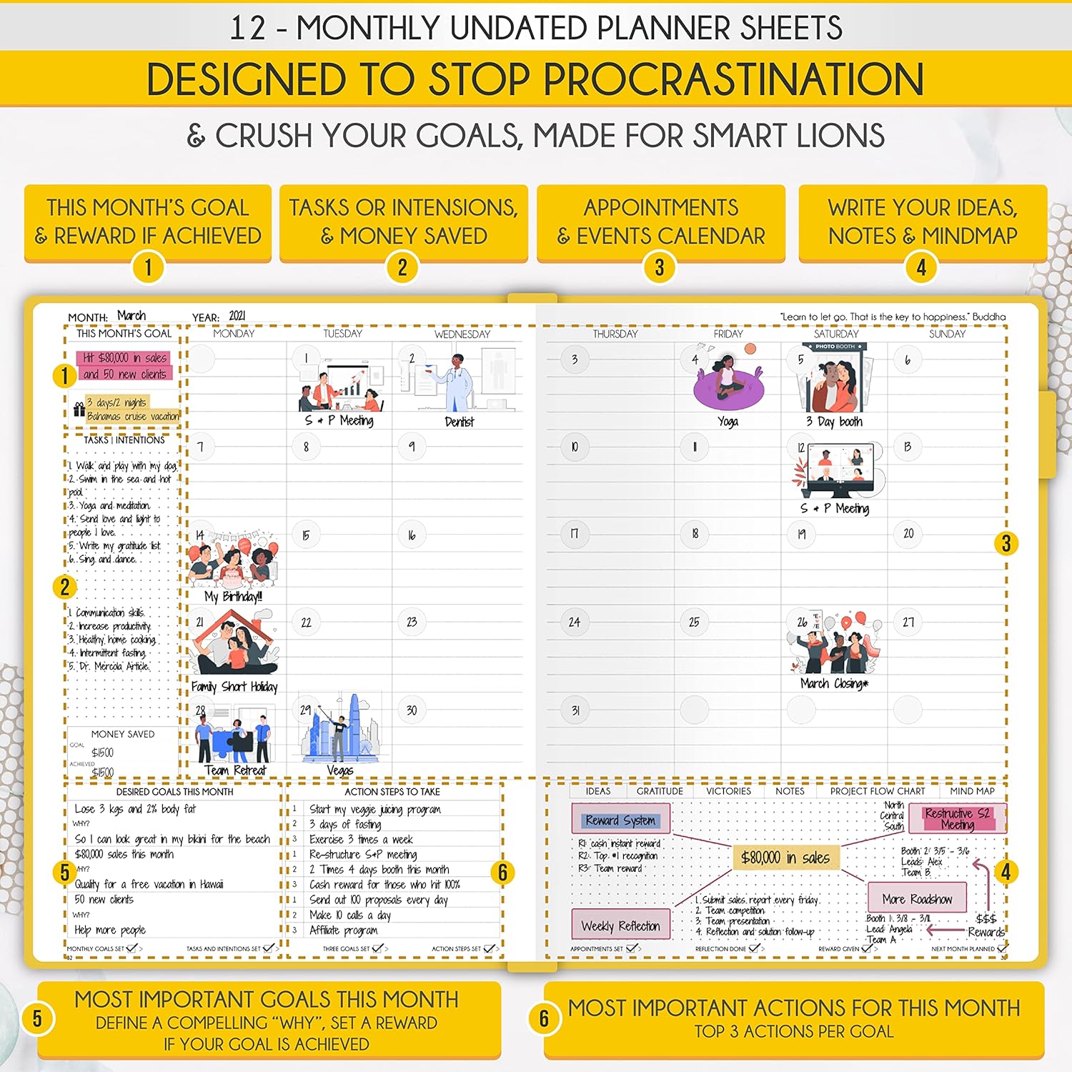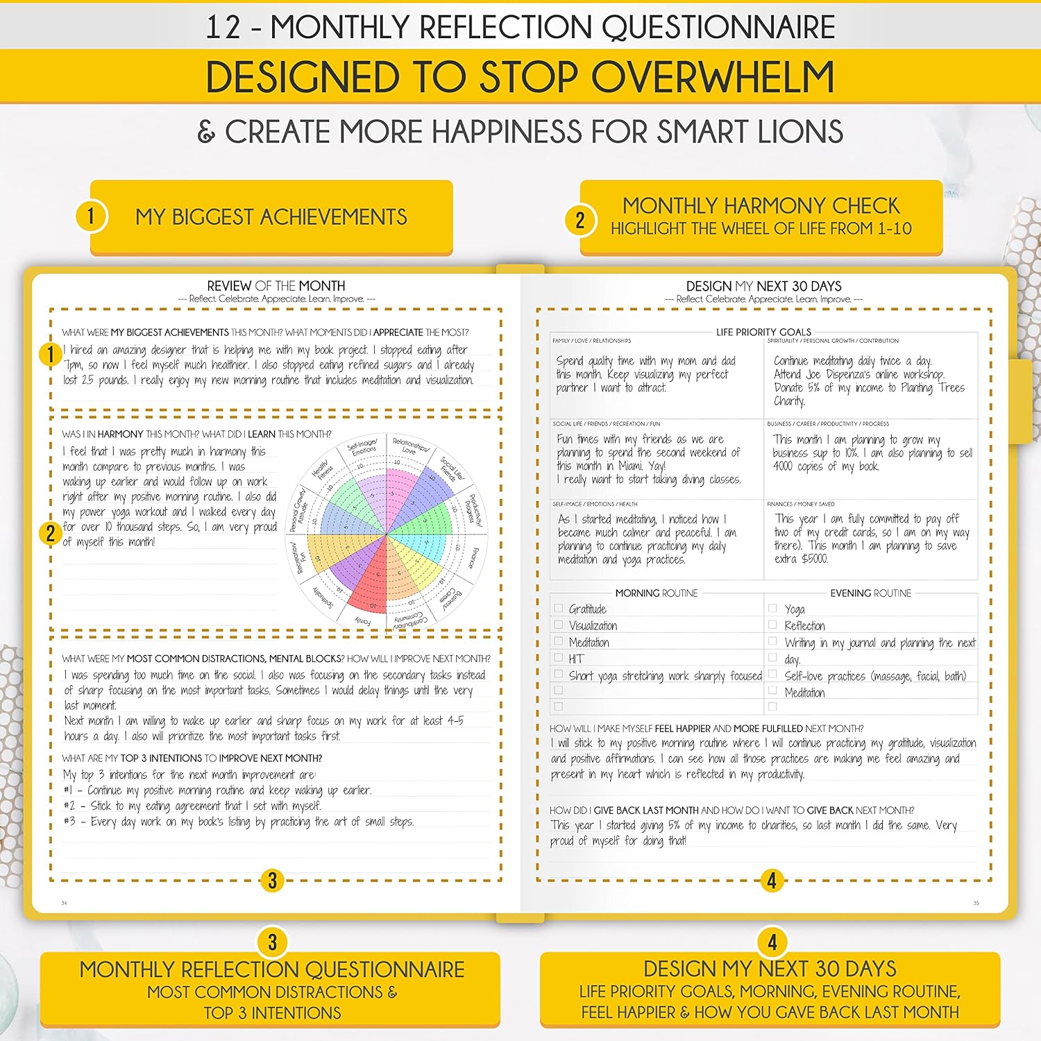 - SELF CARE PLANNER - This premium planner is undated and combines daily, weekly, and monthly planning features along with productivity, goal setting, business organization, to-do lists, notebook functionality, and gratitude journaling all in one. It includes goal-setting guidance that teaches you how to apply the law of attraction and vibration principles to become the best possible version of yourself on a mental, physical, and interpersonal level, thereby increasing productivity and happiness.
