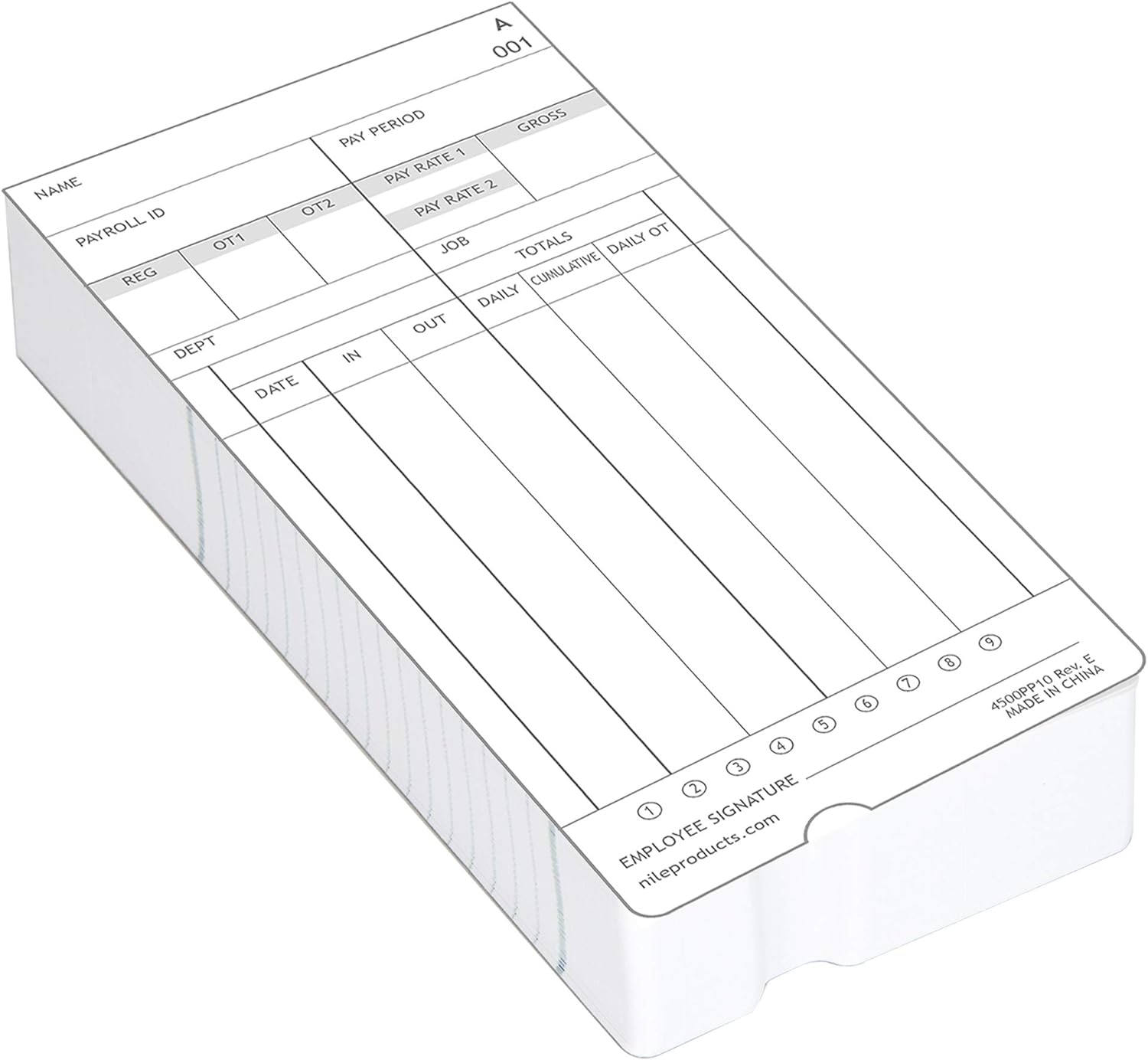 - Compatible: Nile Products Authorized Time cards are Specifically Designed for Small Business Punch Pak model 4500PP Calculating Time Clock. Each package contains 1000 time cards and Each card is numbered for assigning to employees.