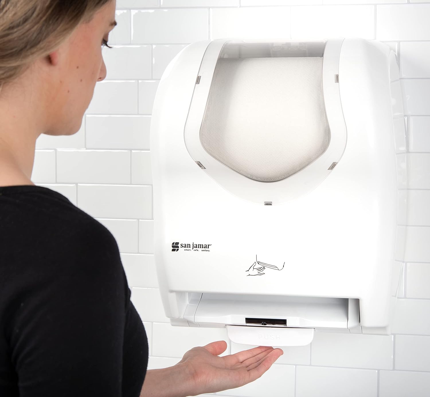 - Benefit from manual "Push" bar operation during low battery situations, ensuring continuous access to paper towels for uninterrupted service