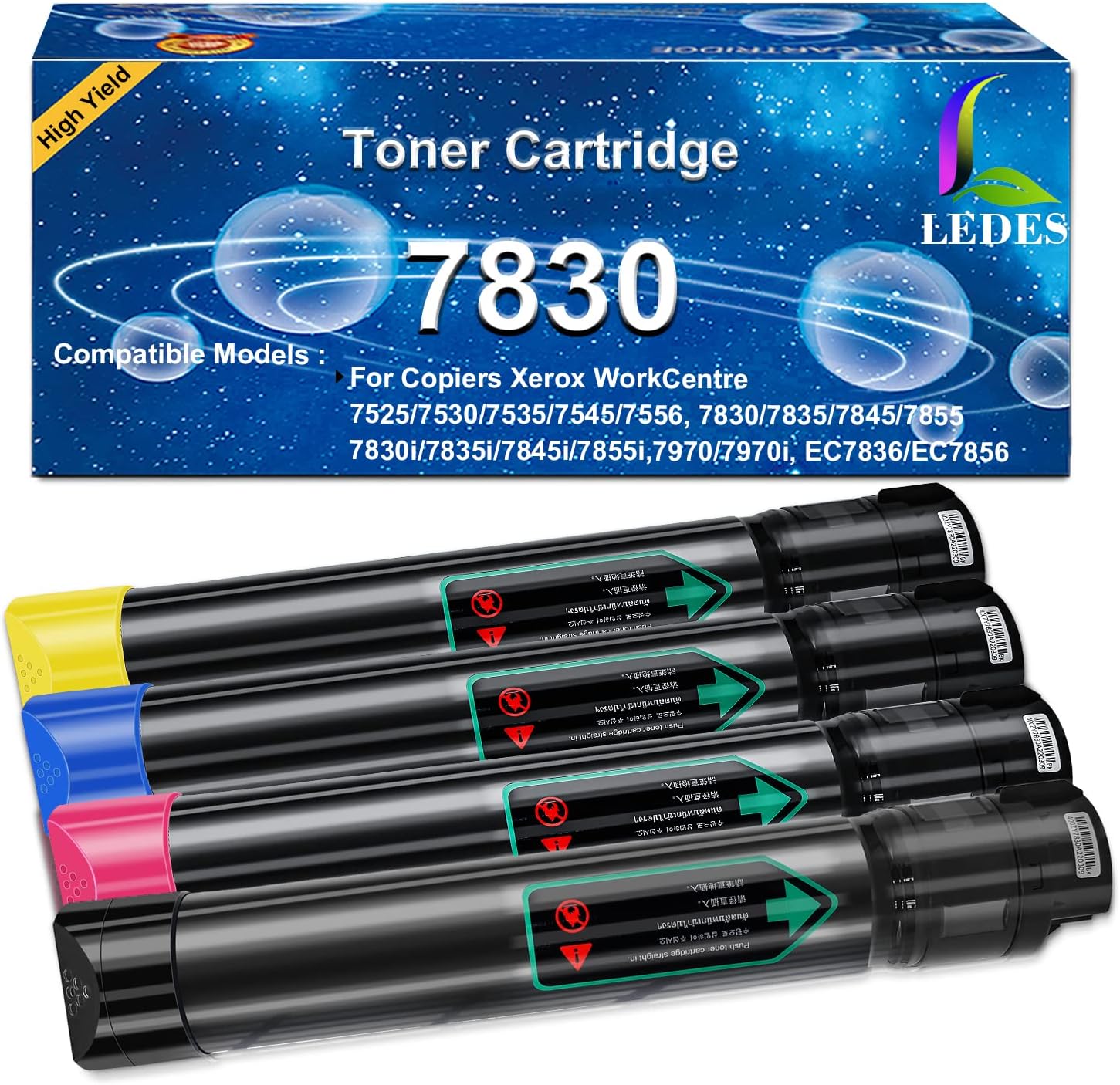 LEDES 7525 Toner Cartridge Compatible Replacement for Xerox WorkCentre 7830 7835 7845 7855 7970 7525 7530 7535 7545 7556 Printer(BK,M,C,Y)
