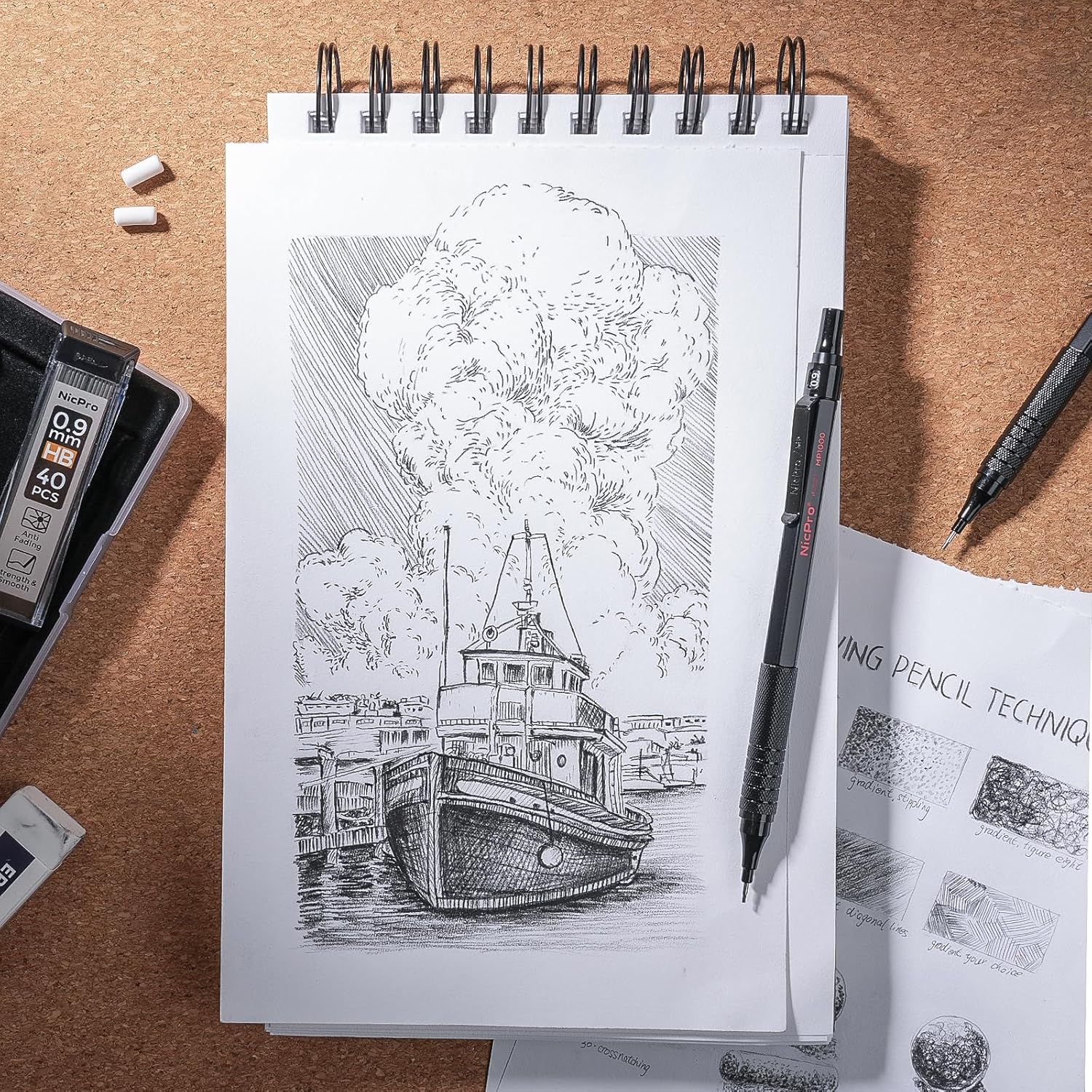 - 【Metal Threaded Anti-skidding Grip】: Nicpro MP1000 pencil adopt fancy hexagon barrel design with metal threaded grip, well balance pencil which bring you comfortable & fatigue-free writing & drafting experience