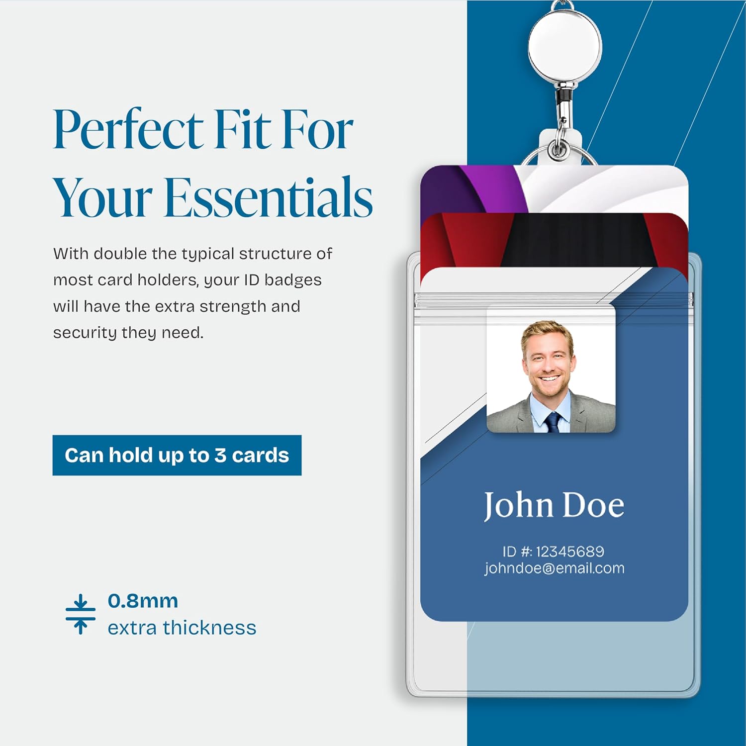 Will Well ID Badge Holders with Holes for Lanyards and Keyrings - Vertical Clear Plastic 2.6" x 3.7" Inner Size Sleeves Fit Up to 3 Cards, 0.8mm Thick Waterproof Resealable Zip Type - 50-Pack