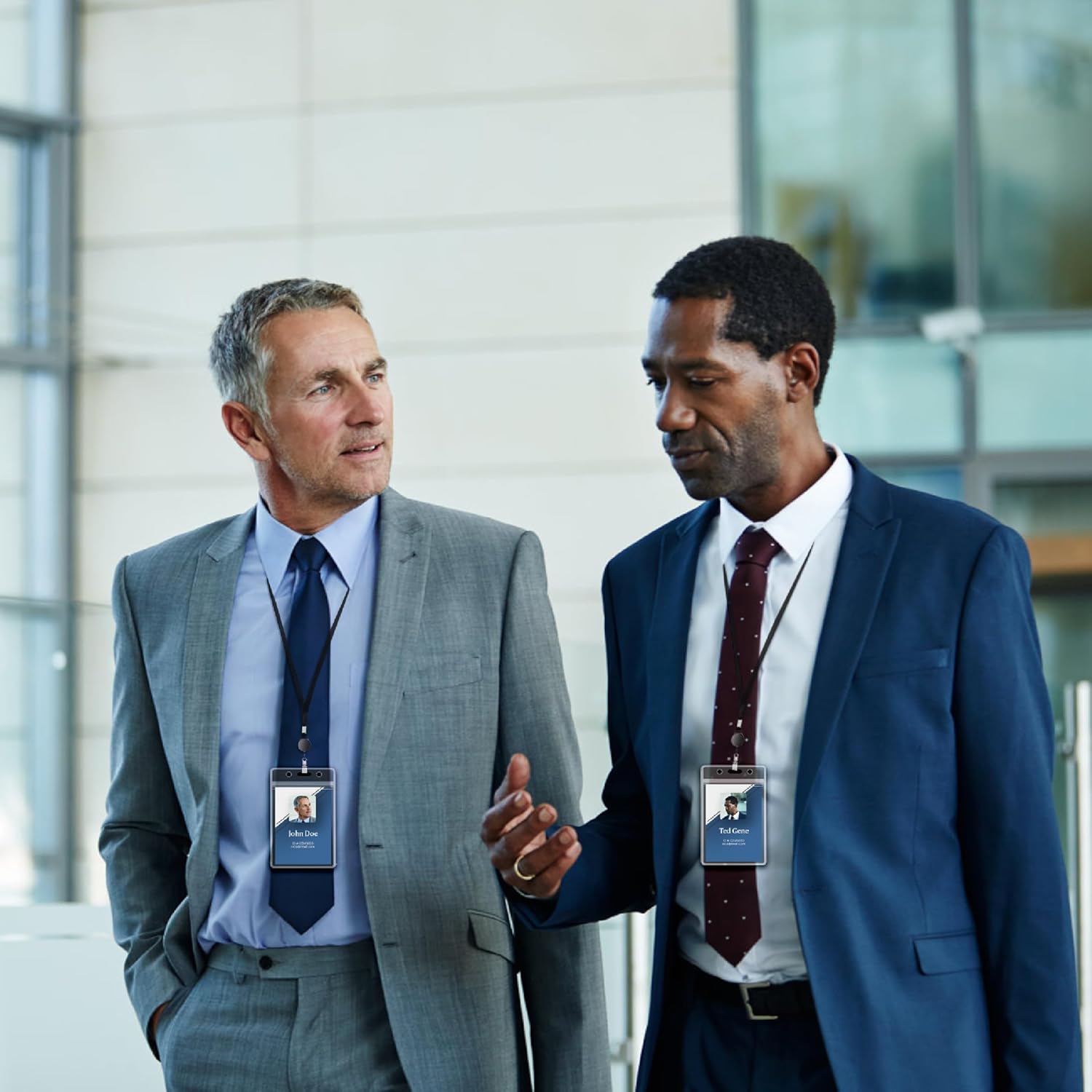 - ✔ ECO & Safe: The name badge holder is made of premium PVC material, RoSH certified. No recycling plastic scrap, non-toxic, odorless and safe guaranteed. That makes the lanyard id holder high transparency and crystal-clear. Stay as new after long term use.