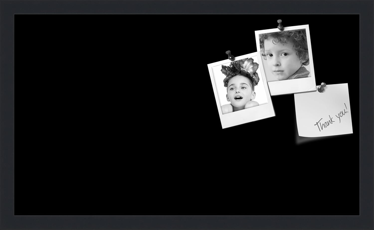 PinPix 24x14 Inch Cork Bulletin Board. This Decorative Framed Pin Board Comes with Solid Black Design and a Satin Black Frame. Ideal for Home Office Decor or Message Board (PinPix-622)