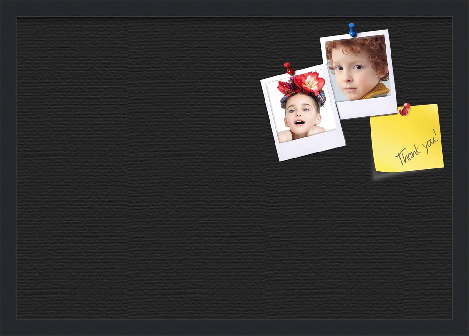 PinPix 26x18 Inch Cork Bulletin Board. This Decorative Framed Pin Board Comes with Solid Black Design and a Satin Black Frame. Ideal for Home Office Decor or Message Board (PinPix-622)