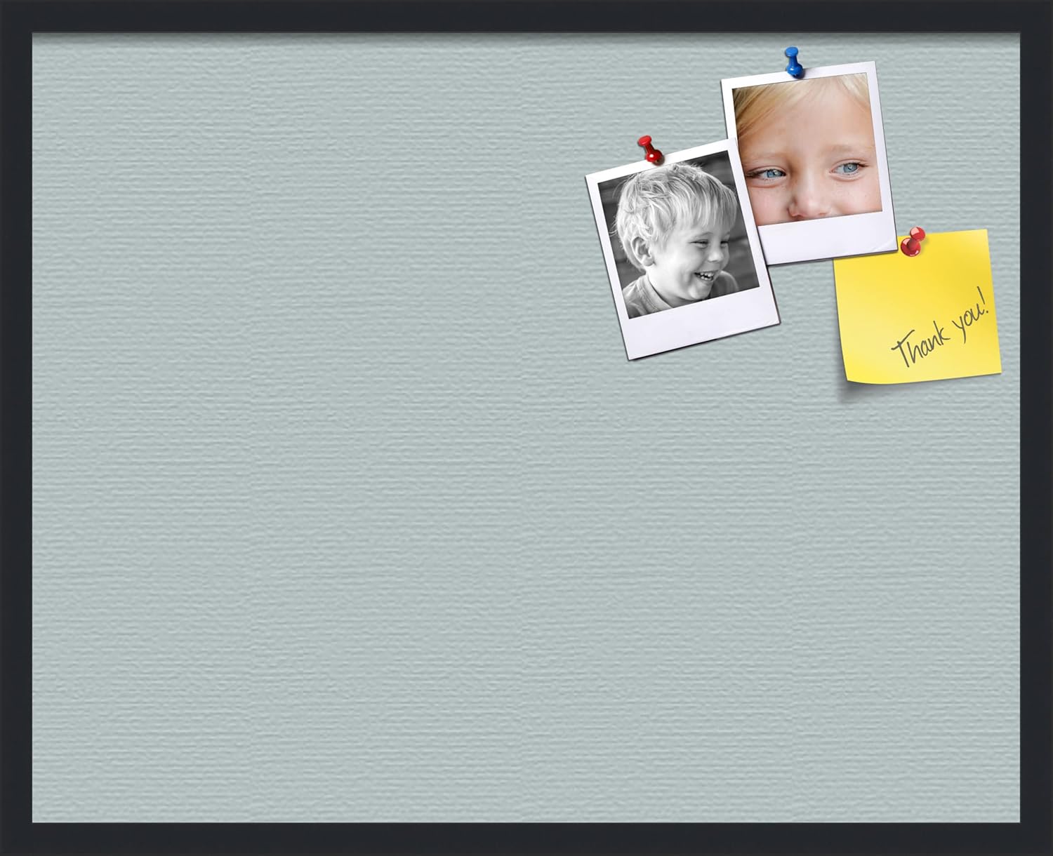 - PinPix is a patented canvas Soft Blue corkboard picture board. It comes framed in Satin Black that is custom made to order.