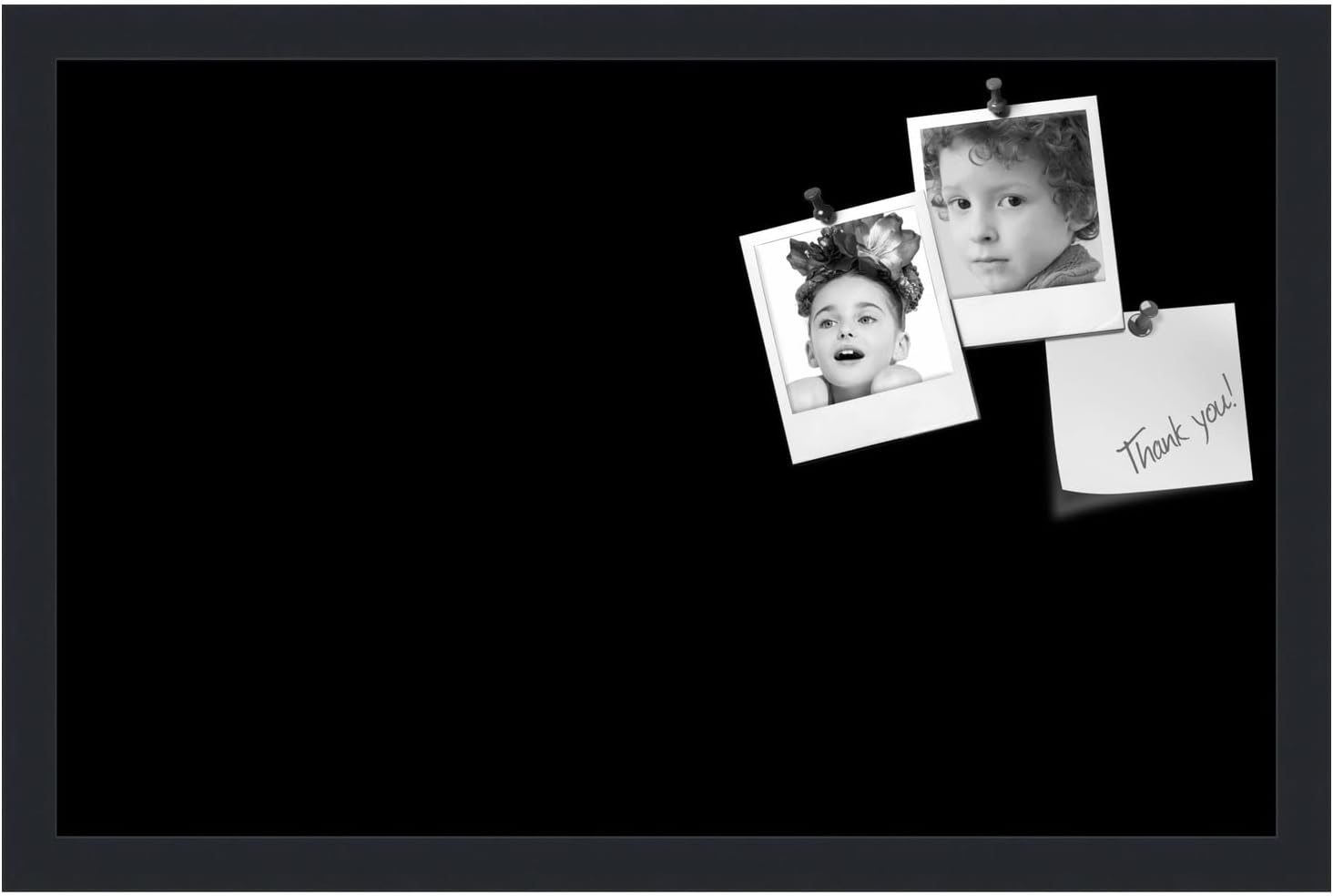 PinPix 22x14 Inch Cork Bulletin Board. This Decorative Framed Pin Board Comes with Solid Black Design and a Satin Black Frame. Ideal for Home Office Decor or Message Board (PinPix-622)