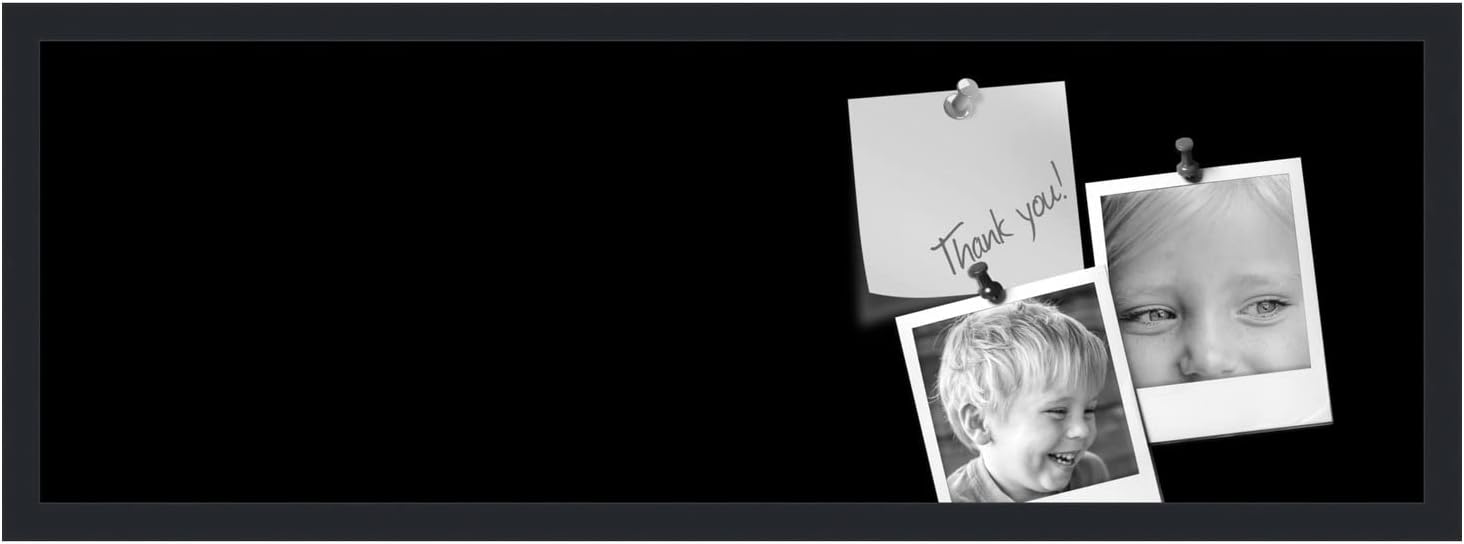 PinPix 36x12 Inch Cork Bulletin Board. This Decorative Framed Pin Board Comes with Solid Black Design and a Satin Black Frame. Ideal for Home Office Decor or Message Board (PinPix-622)