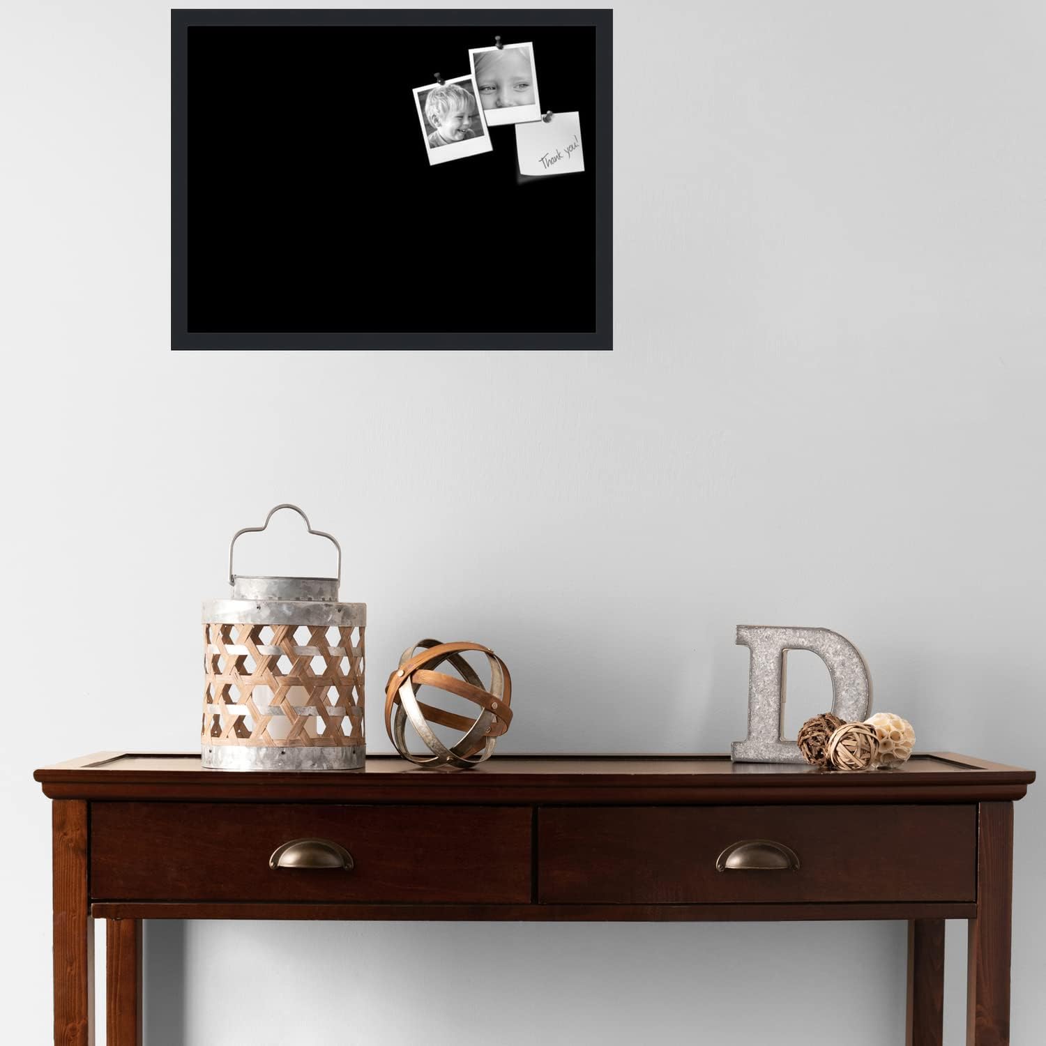 PinPix 24x18 Inch Cork Bulletin Board. This Decorative Framed Pin Board Comes with Solid Black Design and a Satin Black Frame. Ideal for Home Office Decor or Message Board (PinPix-622)