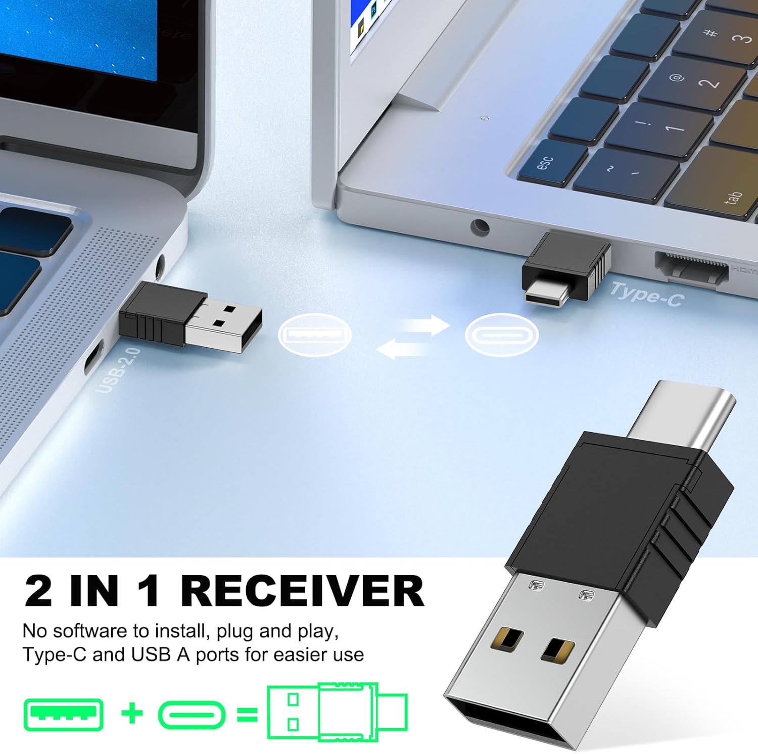 - 【Plug & Play PowerPoint Clicker with Laser Pointer】With 2 IN 1 USB and Type C receiver, Just Plug & Play, no need to install software; Clicker for laptop presentations supports Systems: Windows 2003 / XP / Vista / 7 / 8 / 10, Mac OS, Linux, Android; Supports Software: PowerPoint, Google Slides, Keynote, Prezi, PDF, MS Word, ACD See etc. Computer clicker for presentations supports devices: Macbook air, Macbook pro, Surface pro, PC, Computer etc