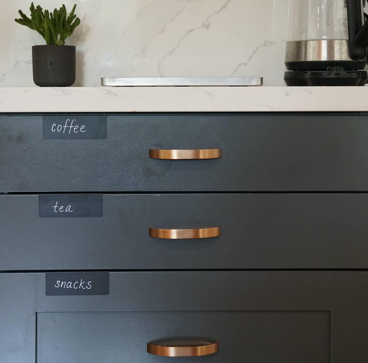 Clip-On Metal Cabinet and Drawer Labels – Reusable Chalkboard Labels for Kitchen, Bathroom, Dresser Drawers. Durable. Polished Edge. No Residue.