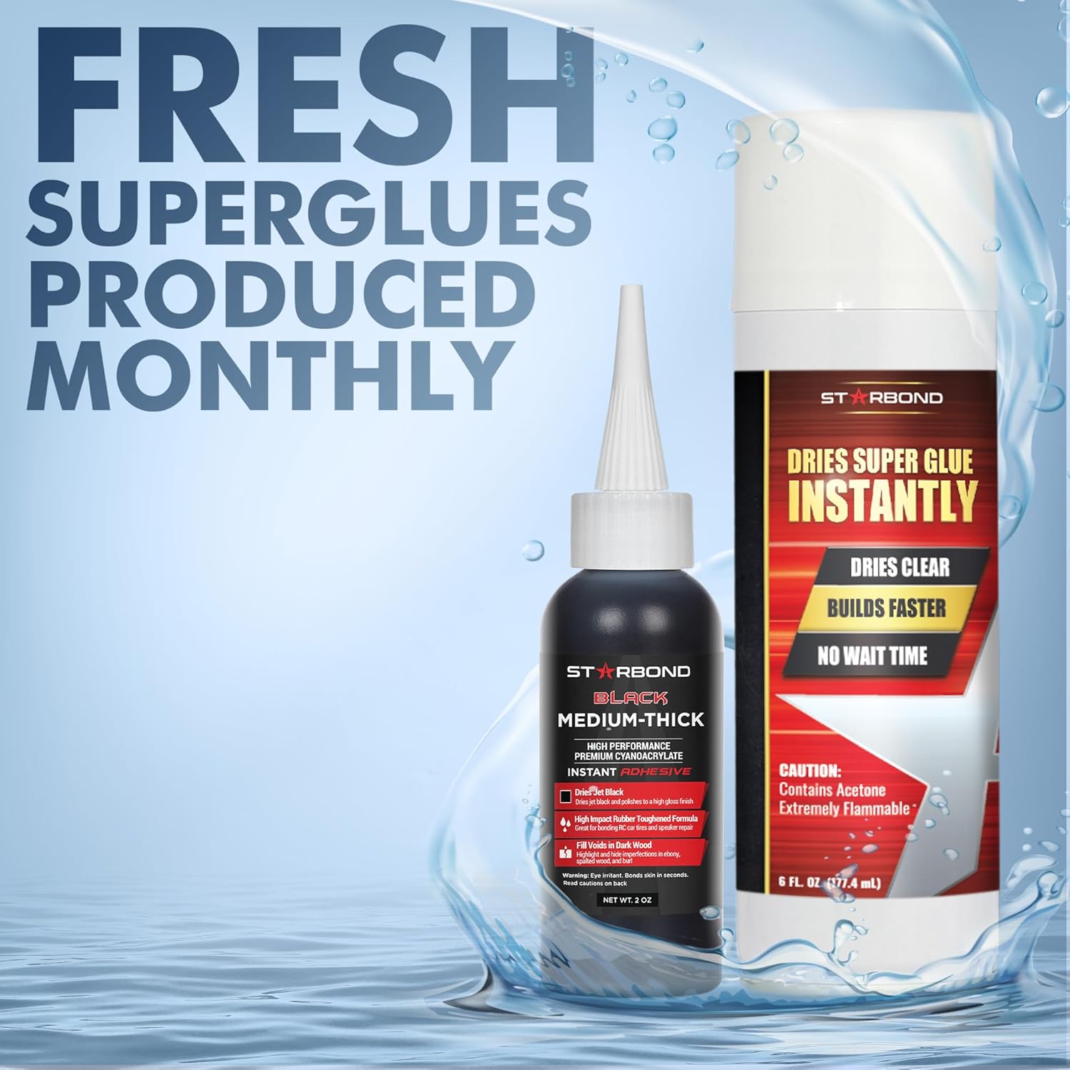 STARBOND 2 oz Black Medium-Thick Premium CA Glue, 6 oz Aerosol Accelerator Bundle, Cyanoacrylate Adhesive Super Glues, for Woodworking, Wood Knots and Voids, Woodturning, Guitar, Hobby