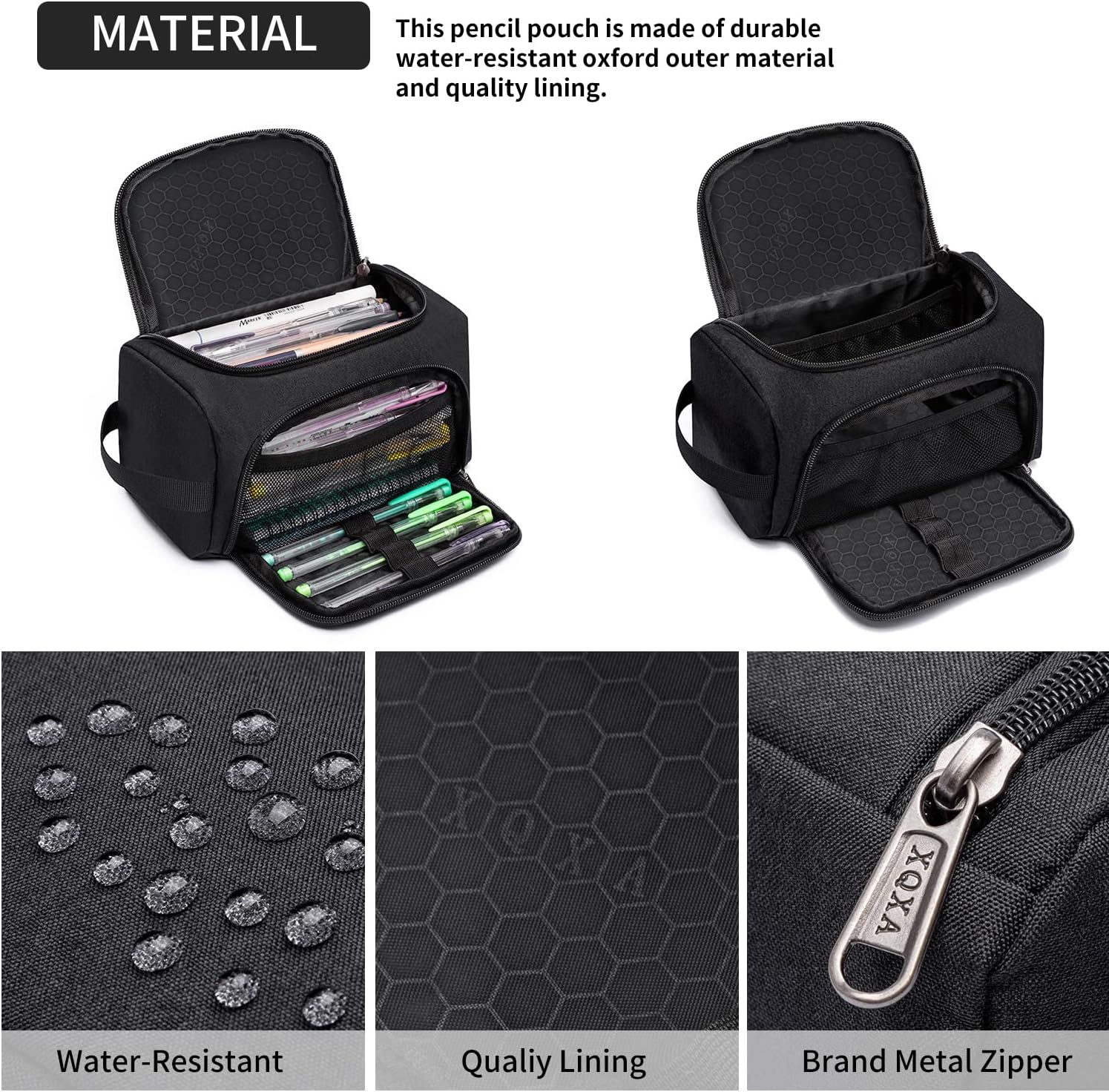XQXA Large Capacity Pencil Case Organizer, Multifunctional Extra Big Pencil Pouch with Compartmens, Travel Simple Stationery Pen Bag, Fabric Pencil Bag for Men Women Girl Boy (Black)