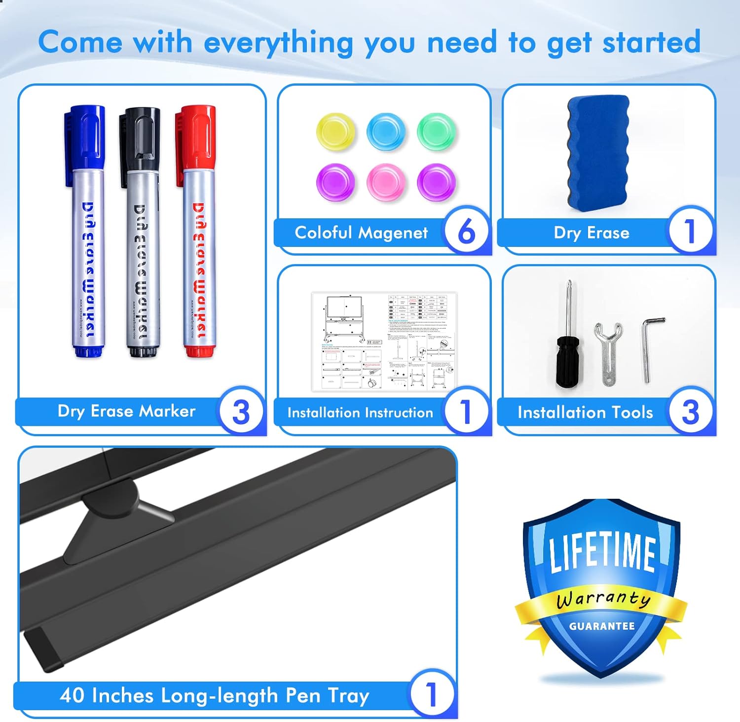 - Enough Space for Writing: 72 x 40 inches rolling whiteboard offers plenty of space for displaying your ideas, teaching your lessons, or making presentations at work. Even two people can work together concurrently with the large double-sided magnetic whiteboard. Each mobile whiteboard has a length of 48 inches marker tray, offering plenty of room to keep your writing supplies organized and close at hand. Get much more comfortable writing and wiping experience with maxtek flipping white board