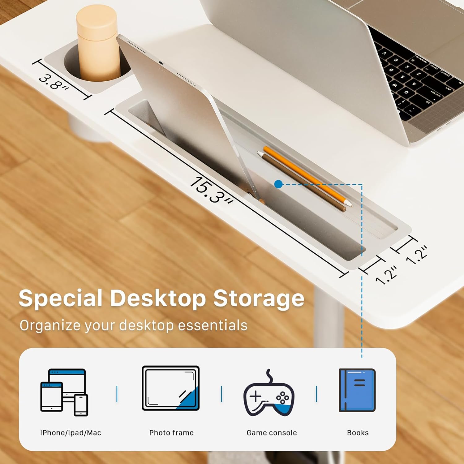 - Height Adjustable Mobile Desk: Just press the handle, the portable desk can be easily adjusted from 30.7" to 44.2", help you find the ideal position. Notes: The base's height is 4.3". If you want to use near the couch, please check the height