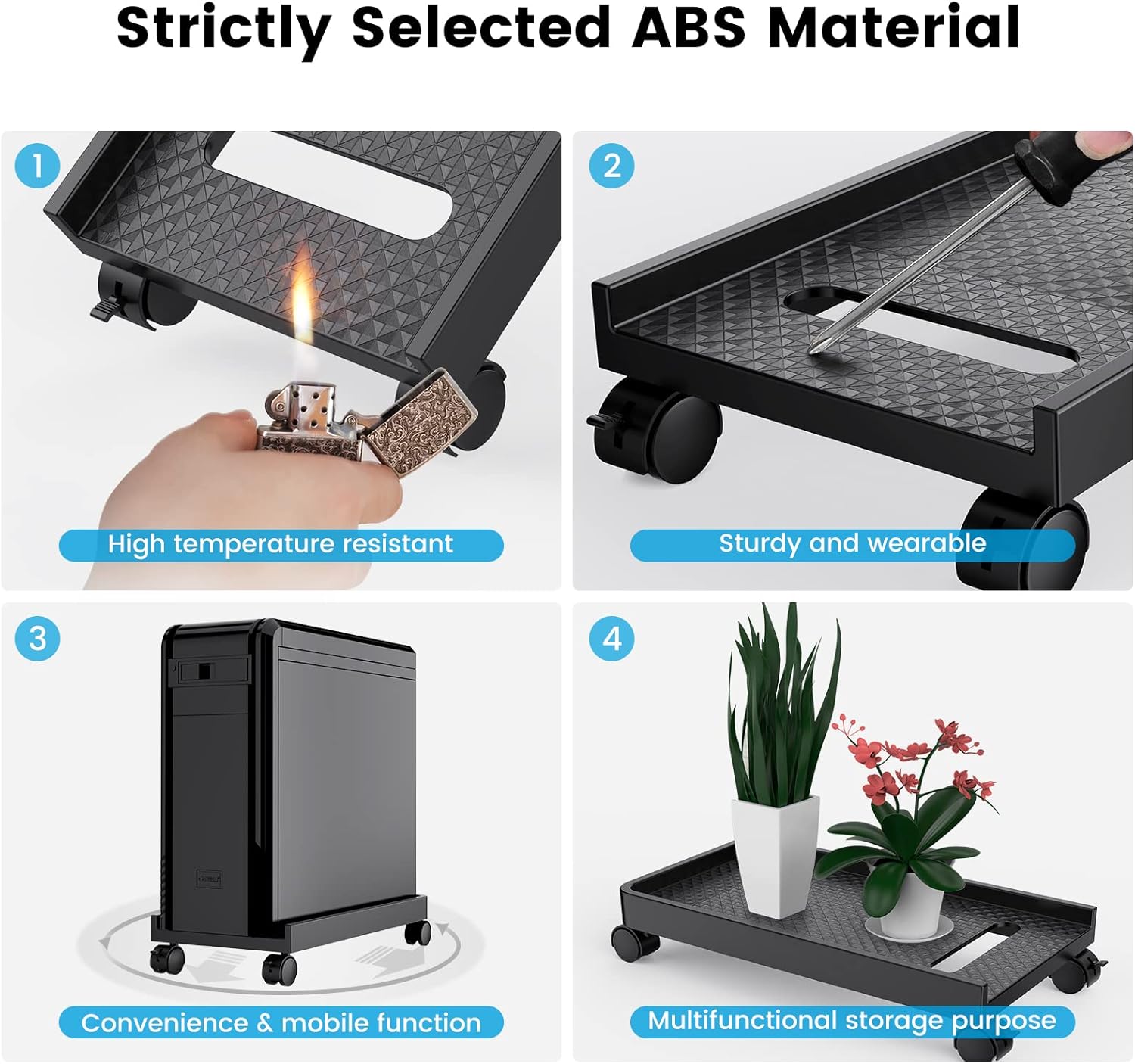 - 【Silent & Smooth Mobility】Four high-quality rubber casters (2 lockable) ensure low-noise movement under your desk. The reinforced base glides your heavy PC tower effortlessly—perfect for dynamic workspace reconfiguration