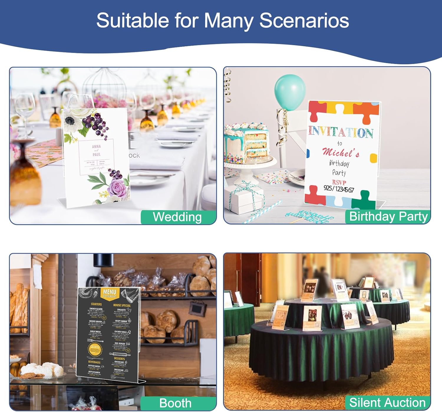- 【Widely Use Sign Holder】: 8.5 x 11 acrylic sign holder perfect for announcements, photos, images, brochures. It can be used by office, home, restaurants, trade shows, any other location where you want to display your signs.