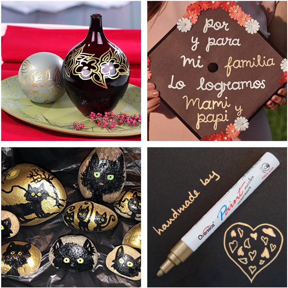 Overseas Gold and Silver Paint Pens - 6 Pack Oil Based Metallic Permanent Markers, Medium Tip, Quick Dry and Waterproof Paint Markers for Rock, Wood, Metal, Plastic, Canvas, Glass, Ceramics, Rubber