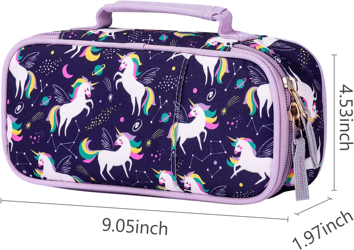 - Unicorn Pencil Case Size: 9.0 x 2.0 x 4.5 inch
