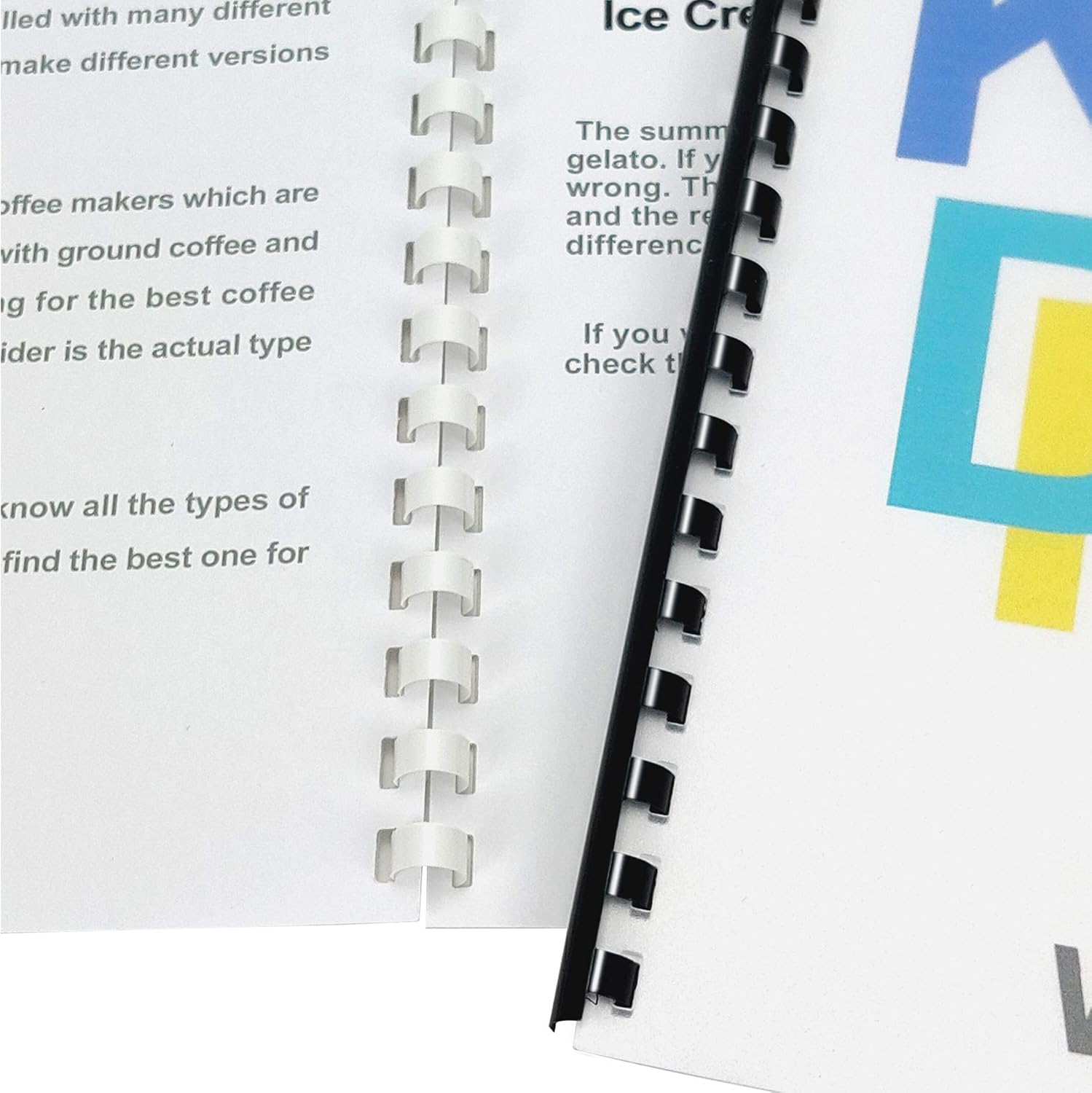 - Available in a variety of sizes and colors to bind 2-20 page documents. 3mm margin for binding 2-20 sheets ( max. binding thickness: 0.08in/2mm ) , 6mm margin for binding 10 sheets ( max. binding thickness: 0.04in/1mm ).