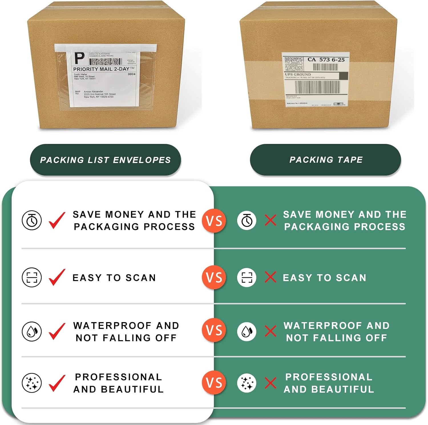 - 【Wider Side Open】So convenient and easy to use, the long side opening makes adding paperwork much faster. Just peel, stick, slide the shipping label in and go!