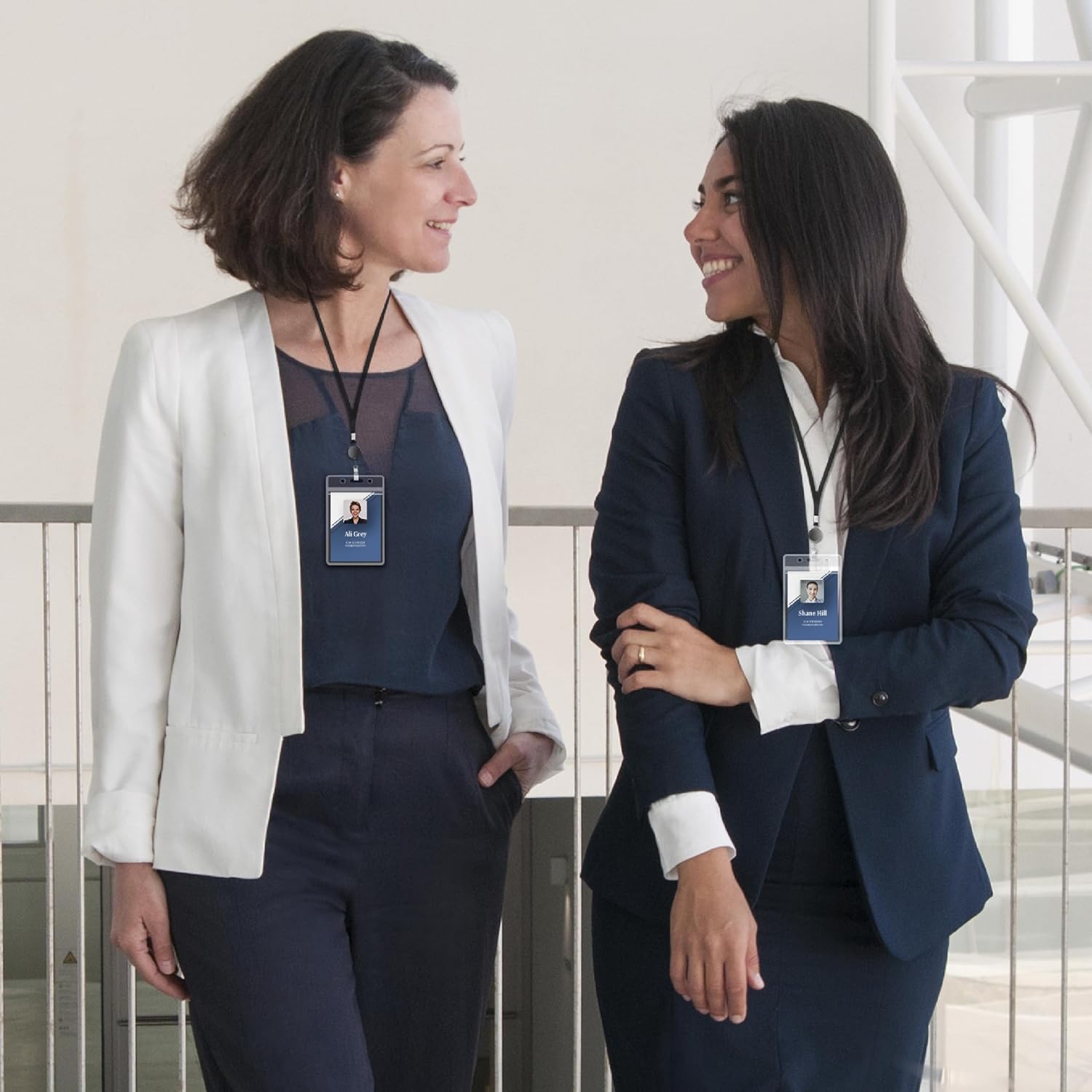- ✔ ECO & Safe: The name badge holder is made of premium PVC material, RoSH certified. No recycling plastic scrap, non-toxic, odorless and safe guaranteed. That makes the lanyard id holder high transparency and crystal-clear. Stay as new after long term use.