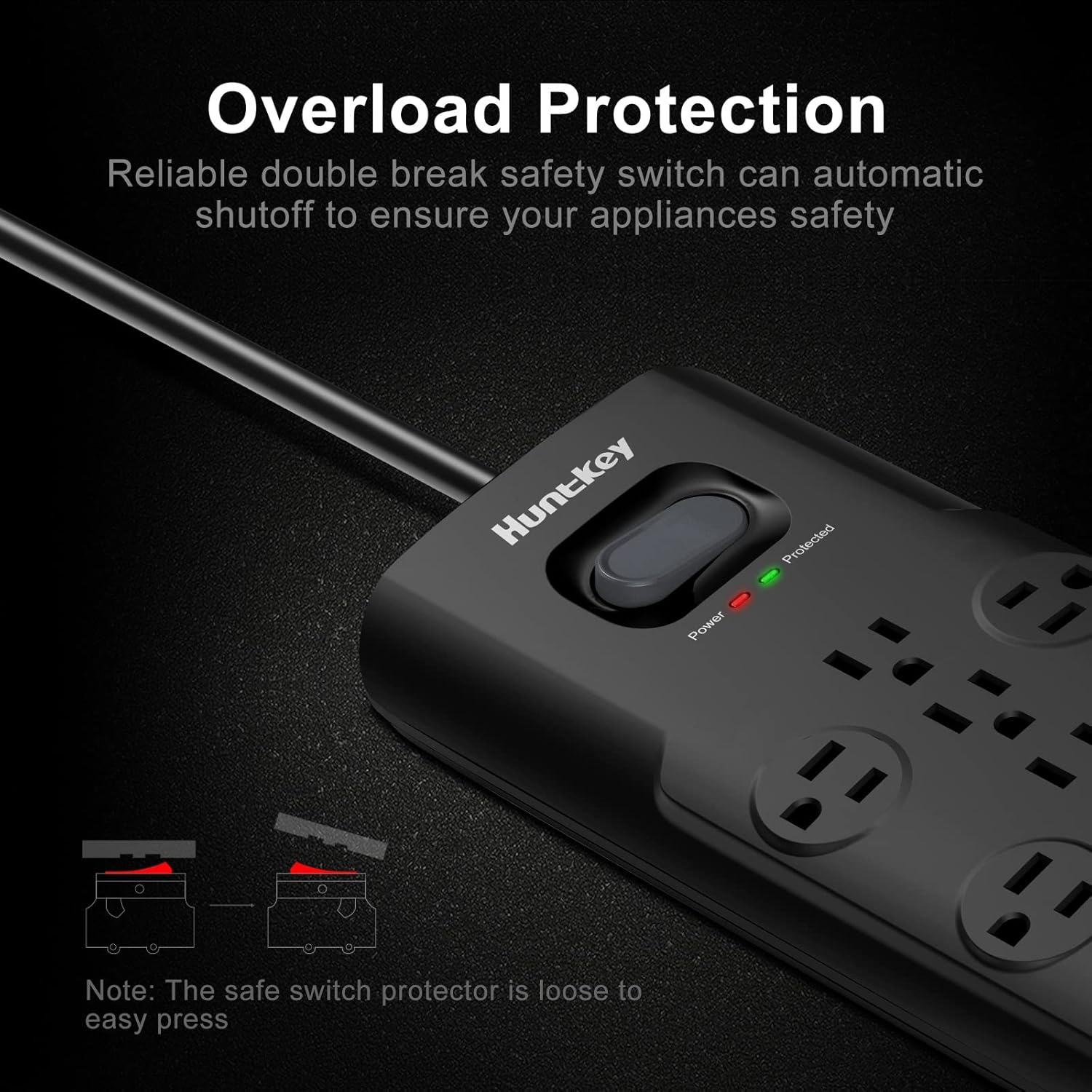 Surge Protector Power Strip (3480J), Huntkey 12 Outlets with 2 USB A Ports and 1 USB C Ports, 20W Power Delivery Charging for Home, Office, Dorm Essential, ETL Listed