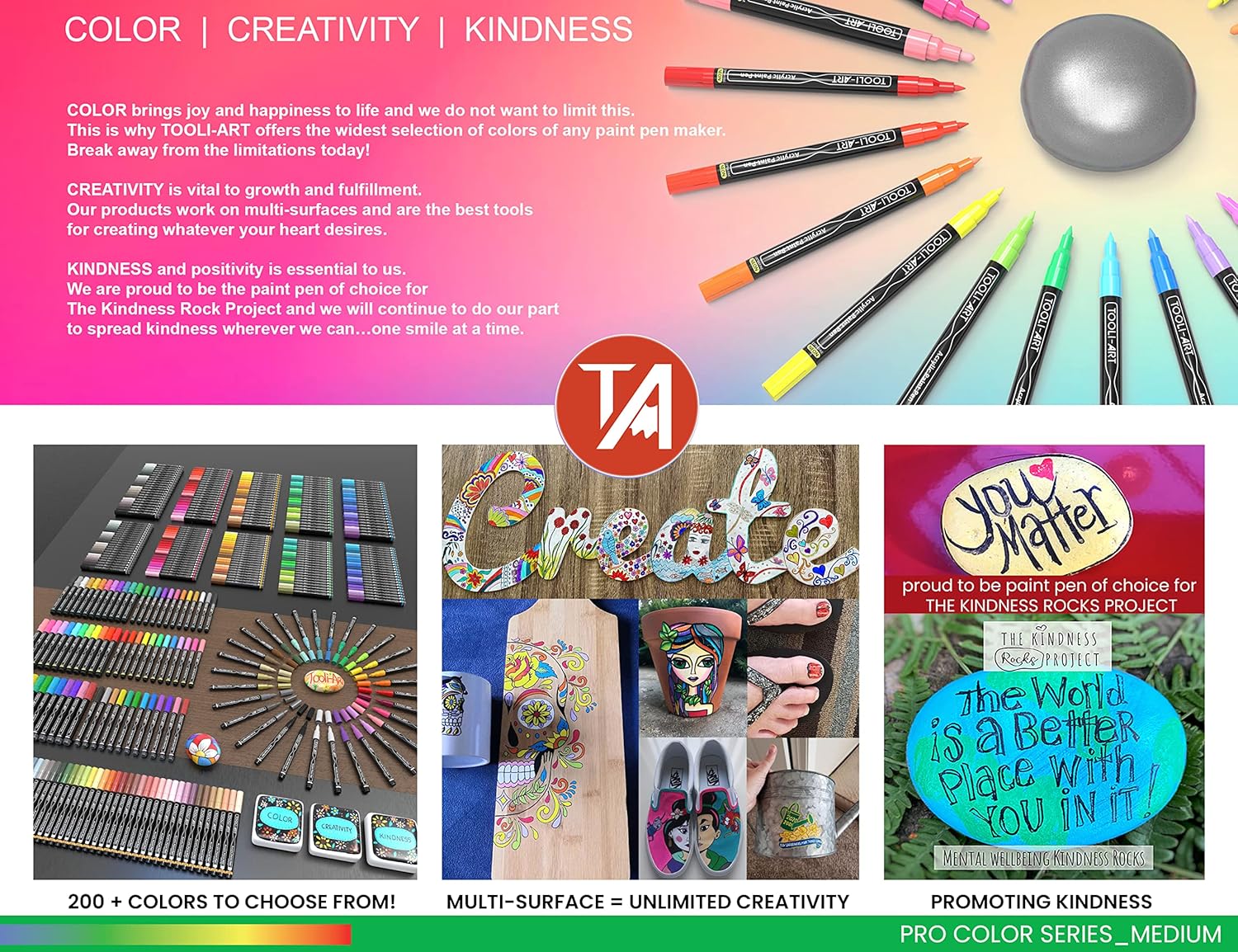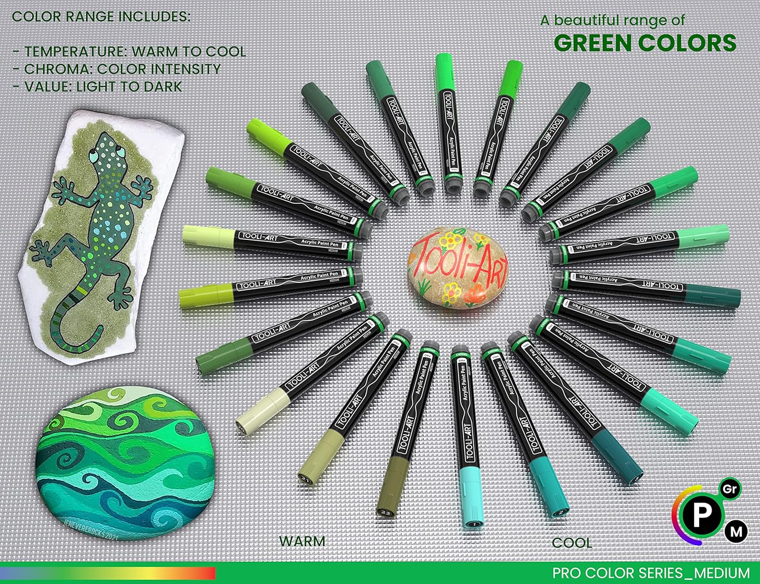 TOOLI-ART 22 Acrylic Paint Markers Paint Pens Pro Color Series Set 3mm Medium Tip for Rock Painting, Glass, Mugs, Wood, Metal, Glass Paint, Canvas, DIY. Non Toxic, Waterbased, Quick Drying (GREENS)