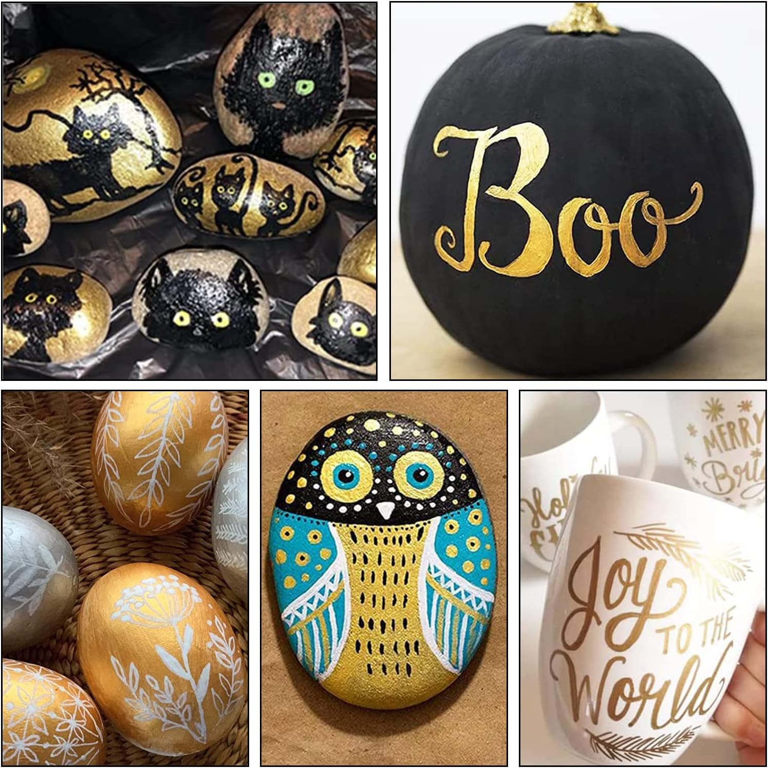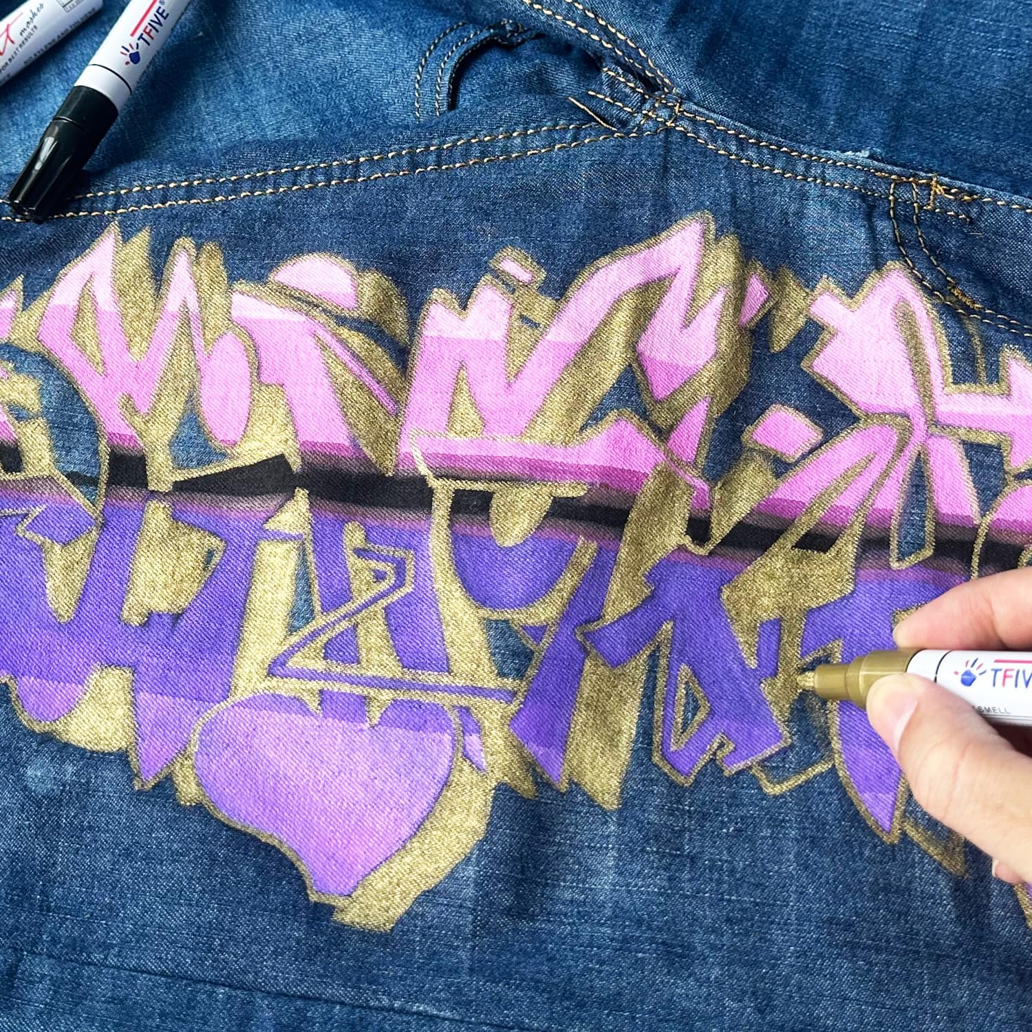 - VERSATILE: TFIVE glod permanent marker paint pen is the best choice to work on a variety of surfaces. Including rock painting ceramic wood leather plastic fabric canvas stone glass metallic wood chalkboard craft supplies etc
