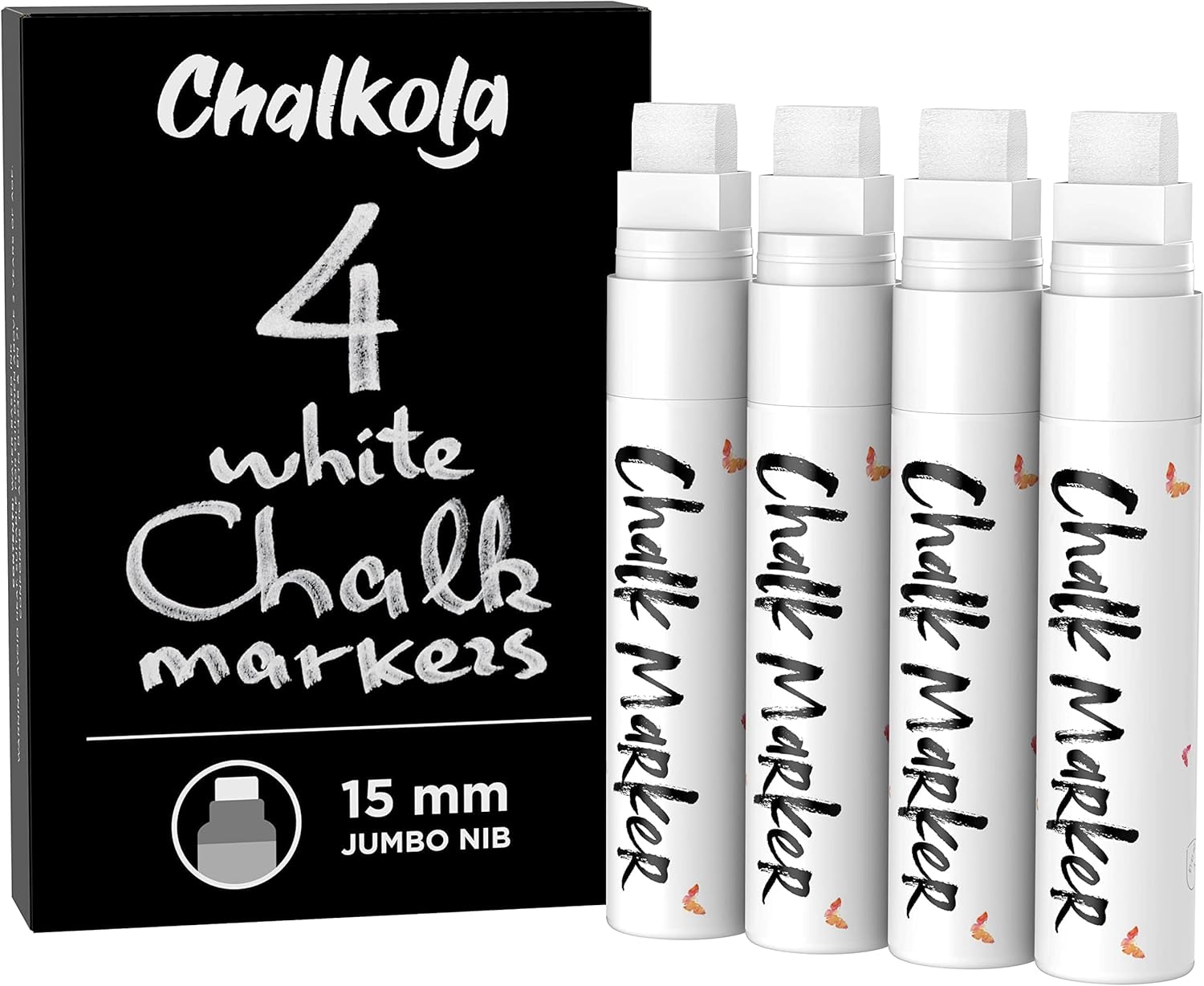 White Jumbo Chalk Markers - 15mm Window Markers | Pack of 4 White Pens - Use on Cars, Chalkboard, Whiteboard, Blackboard, Glass, Bistro | Loved by Teachers, Artists, Businesses