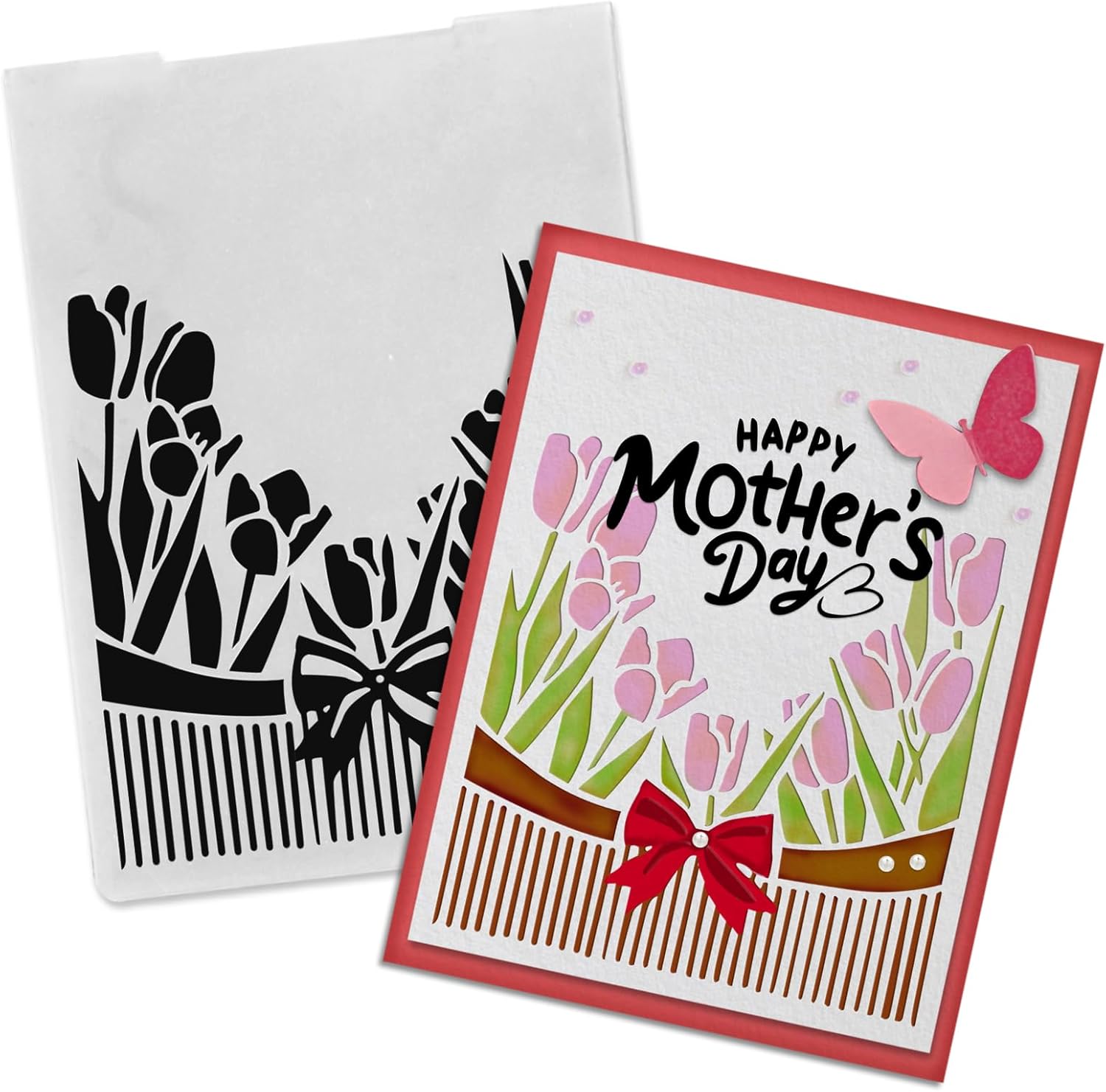Tulip Flowers Embossing Folders for Card Making Spring Floral Background Scrapbooking Plastic Template Photo Album Card Paper Handmade DIY Craft Decoration Template Molds