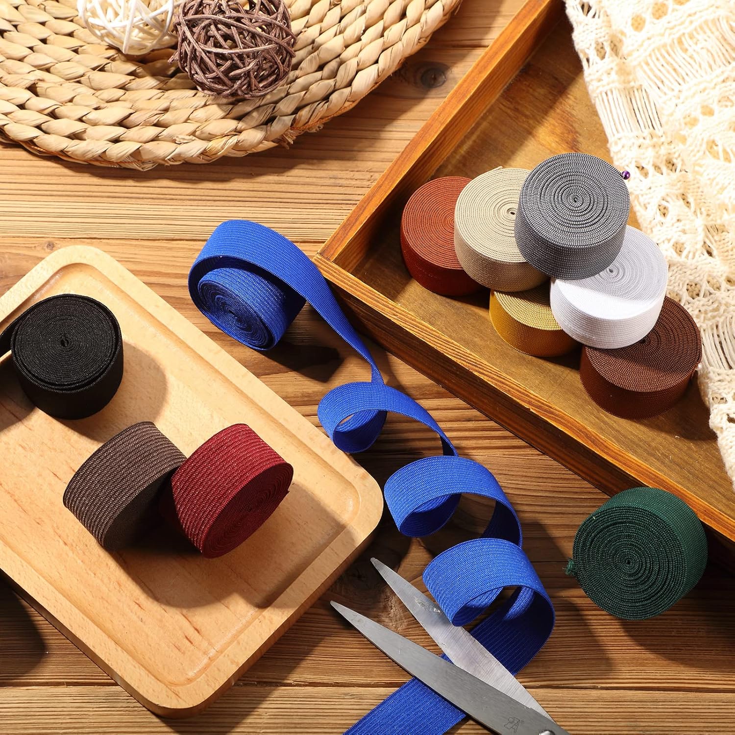 WILLBOND 12 Rolls Colorful Elastic Band Folding Elastic Cord Heavy Duty Stretch Band Knitted Flat Band for Sewing Crafts DIY Comforter Cuffs(1 Inch X 2.2 Yard,Dark Color)