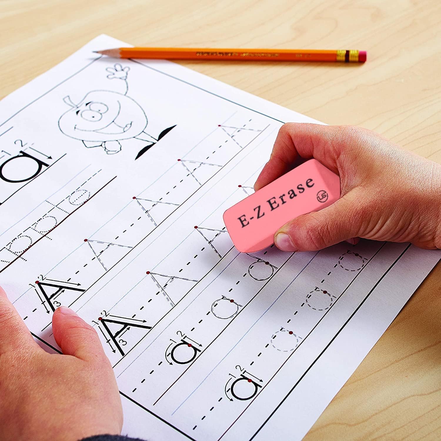 - Bulk Erasers. Includes 120 large premium pink pencil erasers for kids, school, home, and office. For writing, sketching, and much more.