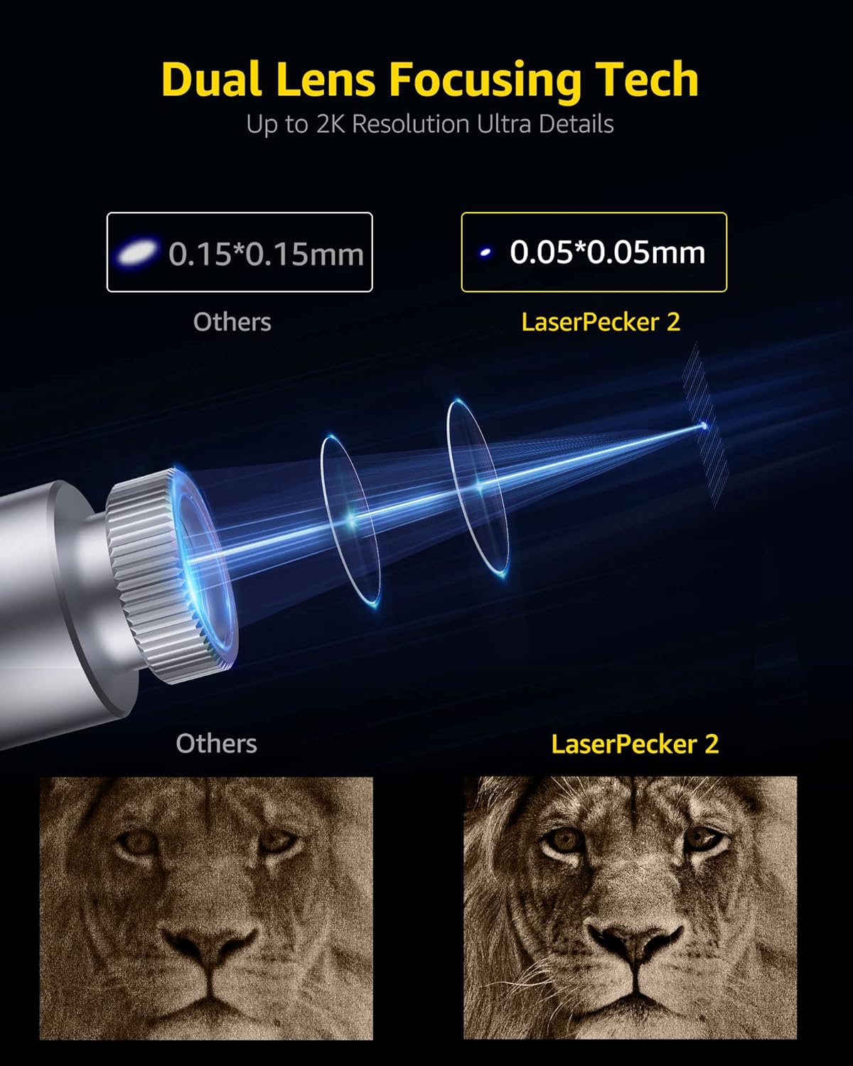 - Best Choice for Laser Engraving: LaserPecker LP2 Laser Engraver with upgrade galvo technology for faster engraving. Max engraving speed of 1417 "/min and frame / graphic preview speed of 8858 "/min. 0.05 mm compressed spot for more details. 3 resolution options (1 K / 1.3K / 2K) for perfect details level