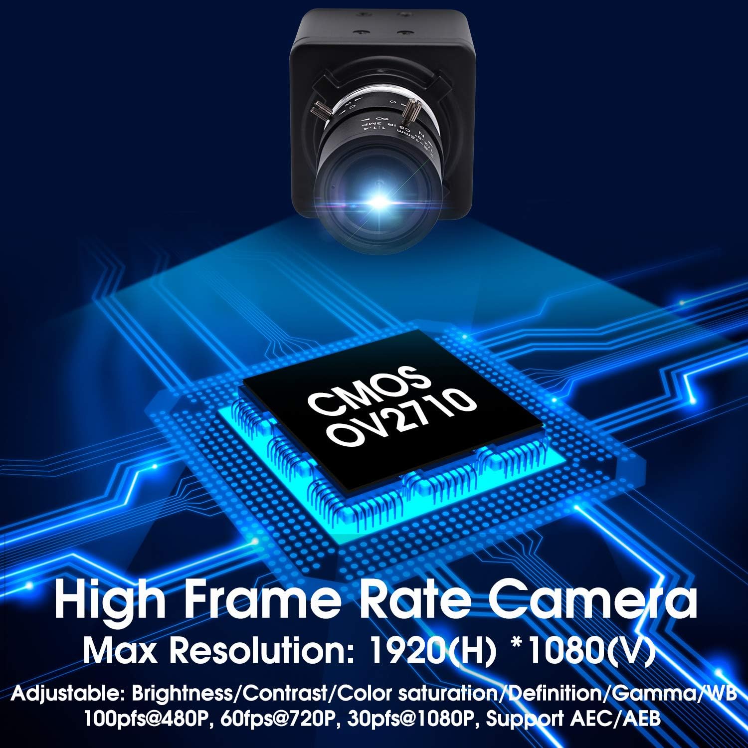 - High Frame Rate: USB camera with high frame rate 1080P 30fps per second, 720P 60fps per second, VGA/48P 100fps per second. Deliver smooth pictures while catching up moving objects. Great for video calling, streaming, studio recording and for Raspberry Pi.High speed USB 2.0 webcam output format support MJPEG/YUY2