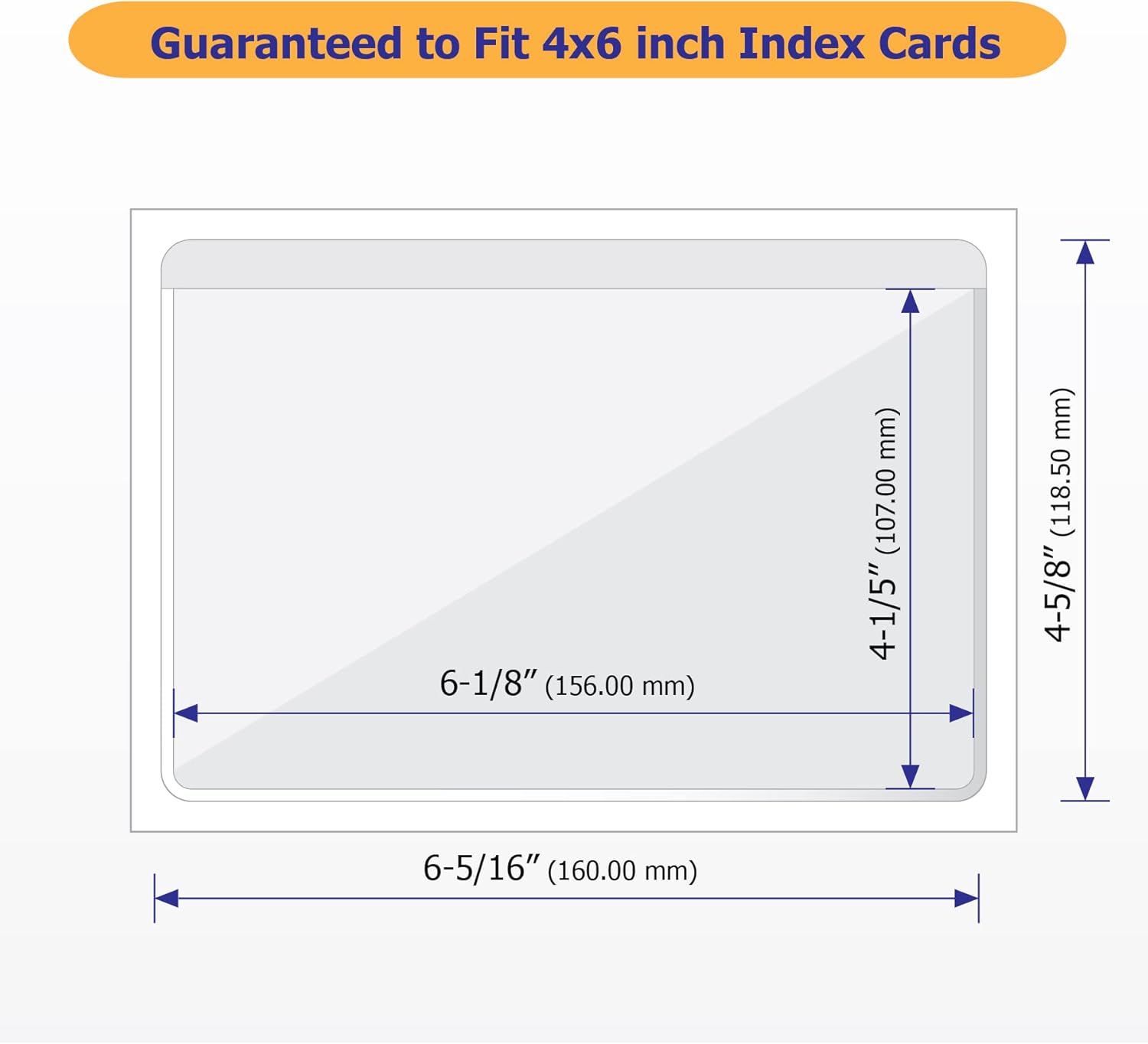 - Value Pack: This pack includes 50 PCS 4-5/8” x 6-5/16” adhesive index card holders with a top opening for easy and convenient loading, guaranteed to fit 4x6 inch index cards.