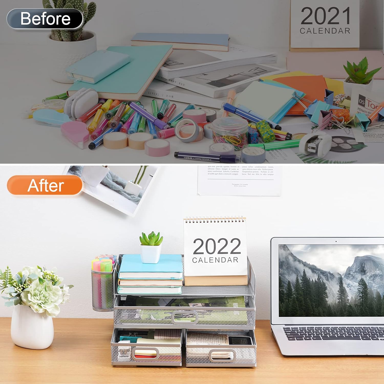 - 【Convenient Personal Storage】Compared with other mesh desktop organizer. The Multi-drawer design can help you store some important papers, whether it is personal letters or personal information can provide you with a certain privacy protection space.