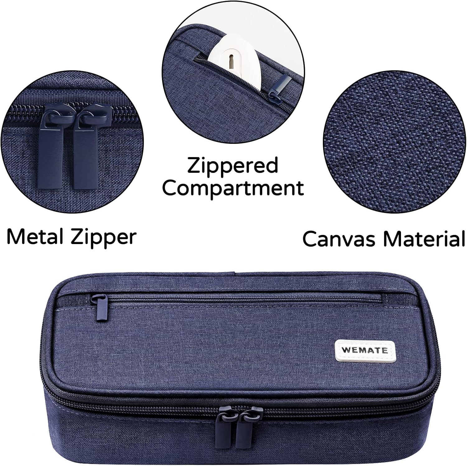 - Premium Canvas: WEMATE large-capacity pencil holder is made of 100% high-quality canvas, is strong and durable. Fine workmanship and provide you with dust-proof, not easy to damage pencil pouch.well-crafted and subjected to strict quality inspection, that not only looks great but will last for years to come