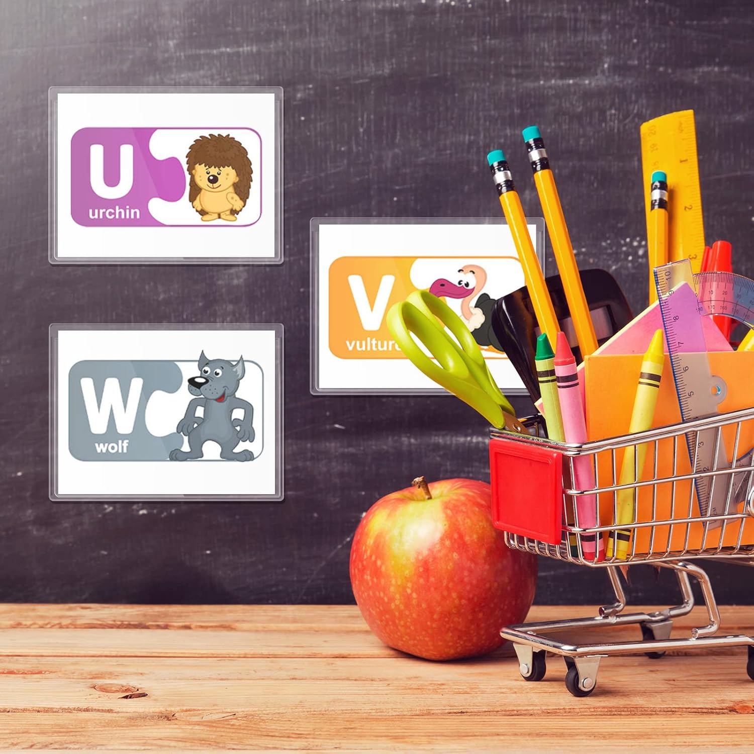 - Wide application: you can keep these clear plastic sleeves handy and stick that at office, or home; They can be applied for reminding, studying, presentations, labeling, inserting index cards or name tags; You also can serve them as gifts to your friends