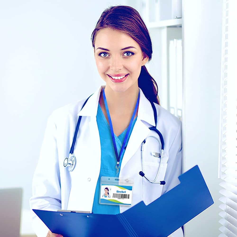 - PROFESSIONAL AND HEAVY DUTY QUALITY: Durable ID Badge Holders, non-breakaway lanyards, and BONUS INSERT CARDS. Secure your employees or guests with these THICK nametags and lanyards that fit most ID and credit cards.