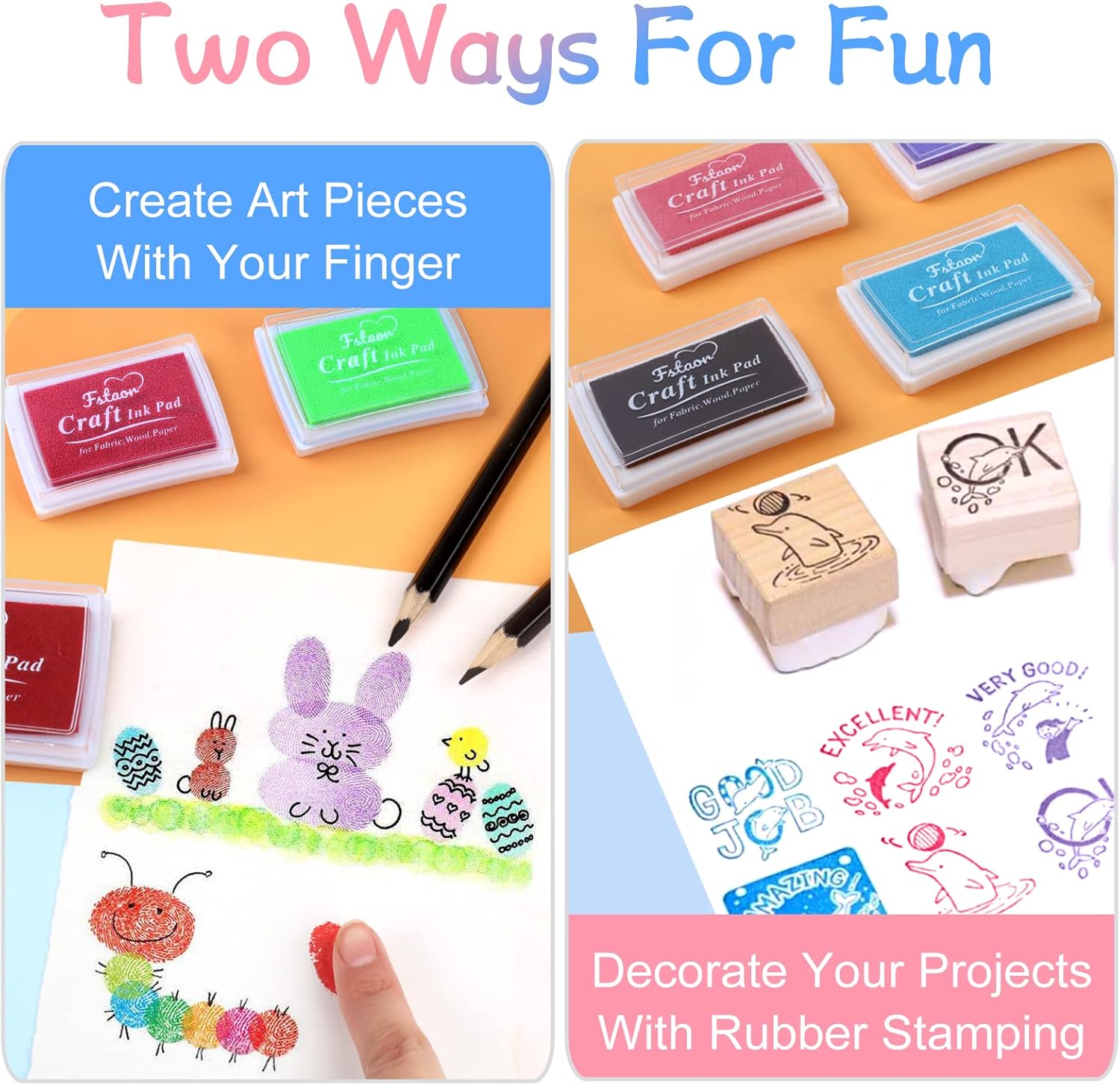 Fstaor 24 Colors Craft Ink Pads for Rubber Stamps, Washable Kids Ink Pads for Paper, Wood, Fabric, Fingerprint, Scrapbooking, DIY Arts & Crafts Supplies for Card Making