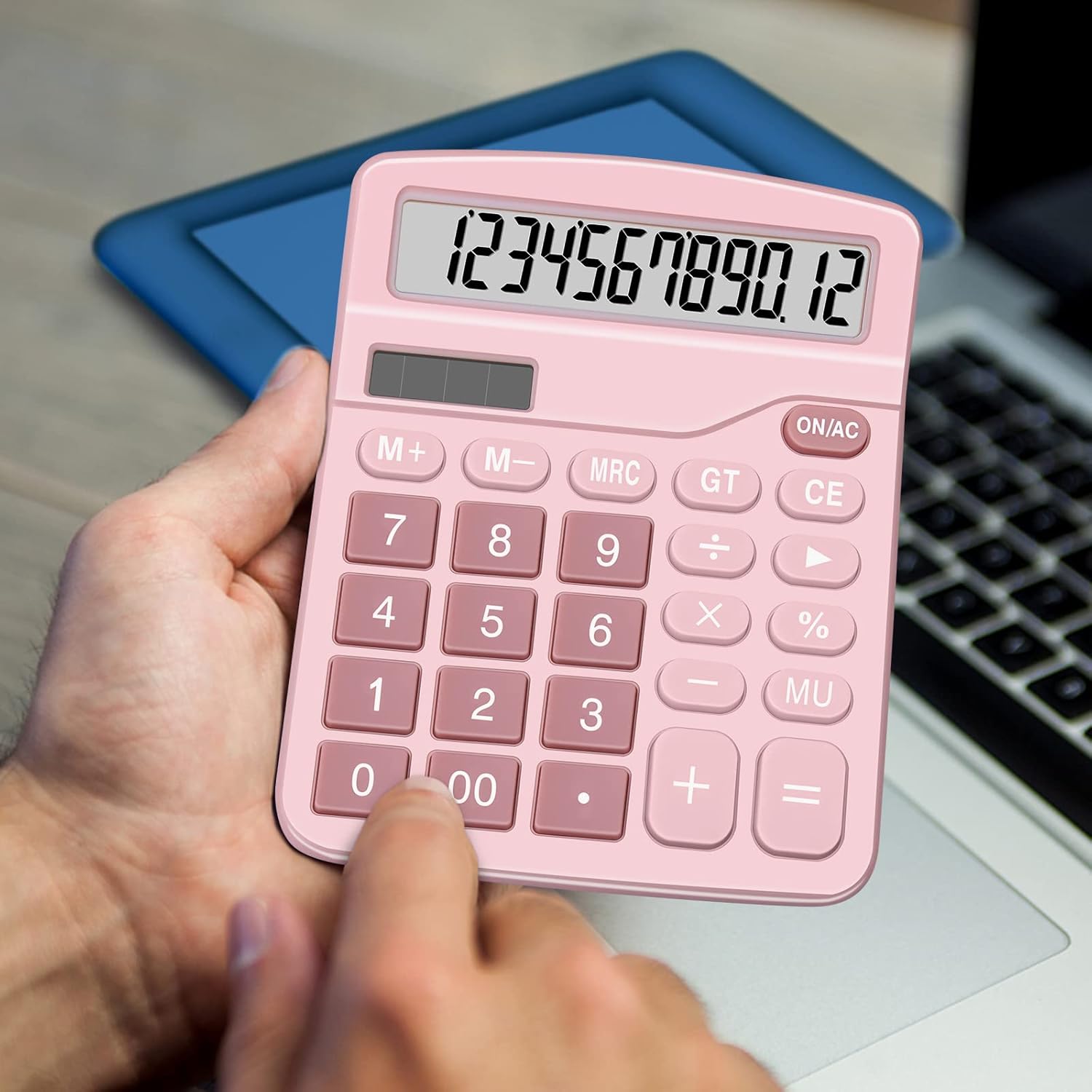 Calculators, Splaks 2 Pack Standard Functional Desktop Calculators Sola and AA Battery Dual Power Electronic Basic Calculator with 12-Digit Large Display for Office, Home, School (1 Blue & 1 Pink)