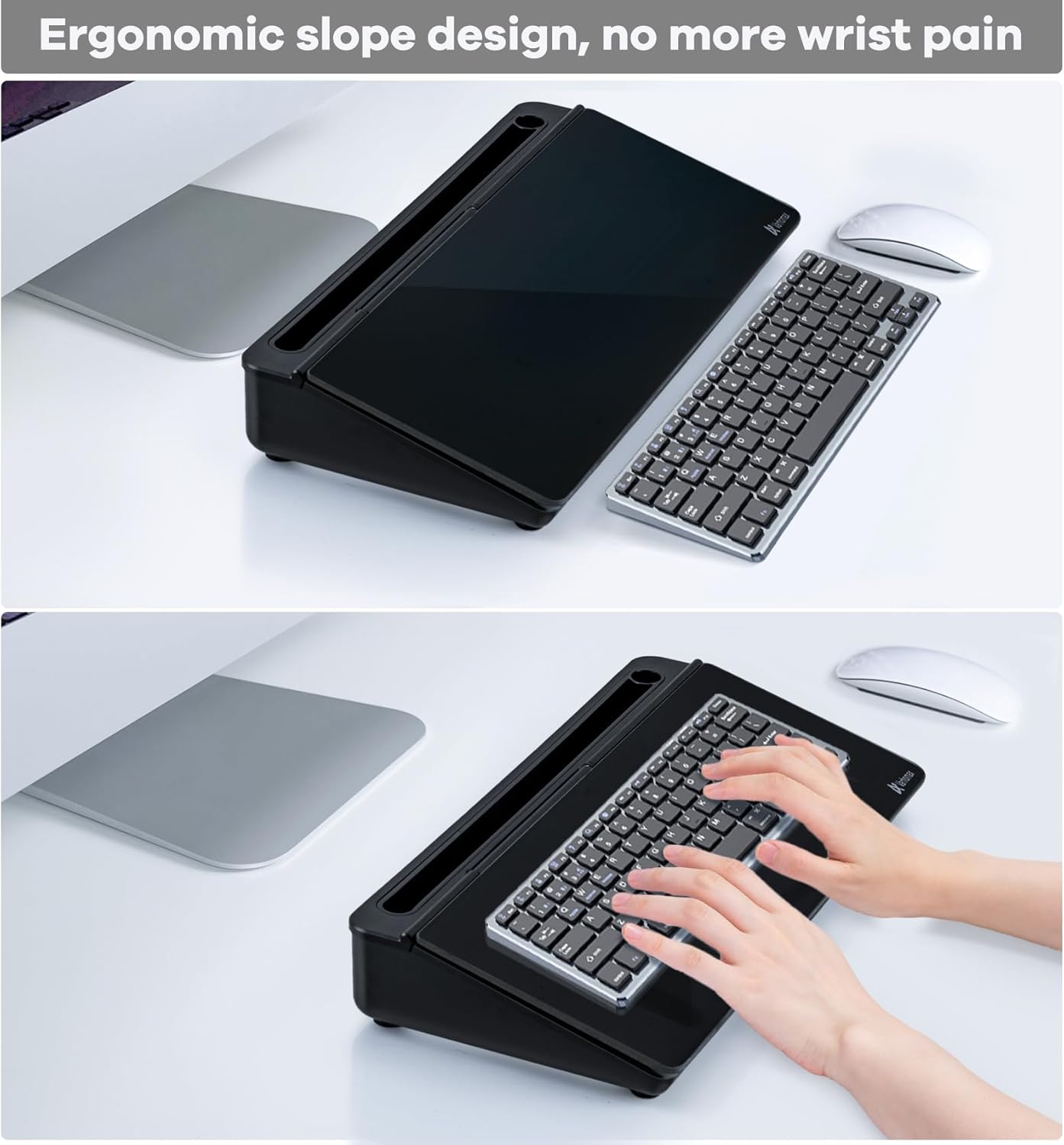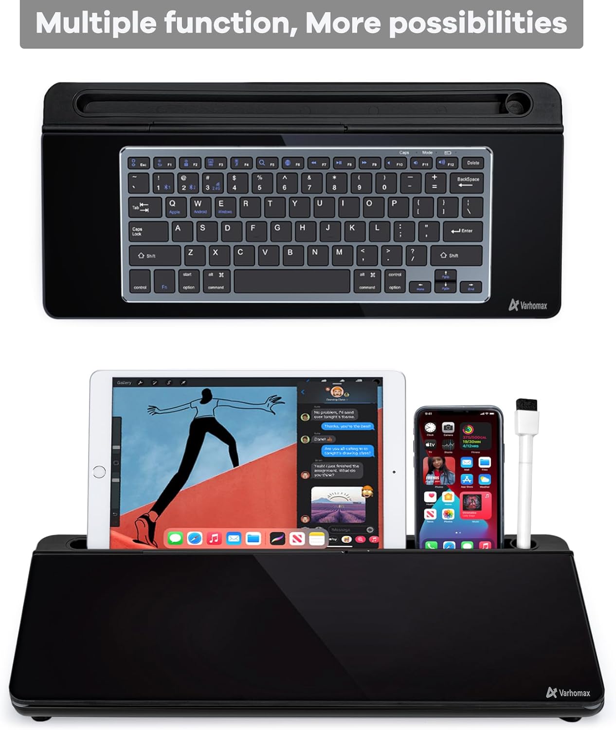 - Multi-function: Other than the glass board and built-in storage box, this product also has a slot on the top which can hold a phone or a tablet.