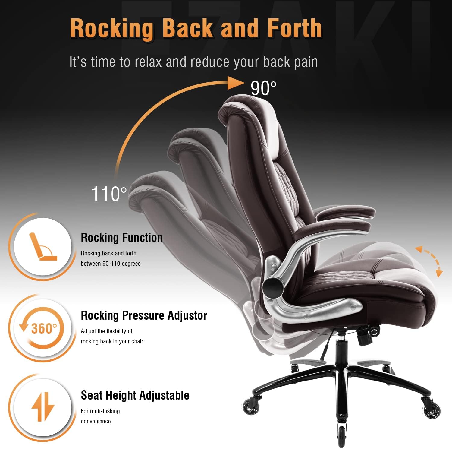 EZAKI High Back Office Chair-Flip-up Arms Executive Computer Desk Chair, Built-in Lumbar Support Thick Padded Adjustable Rock Tension Ergonomic Design for Back Pain (Brown)